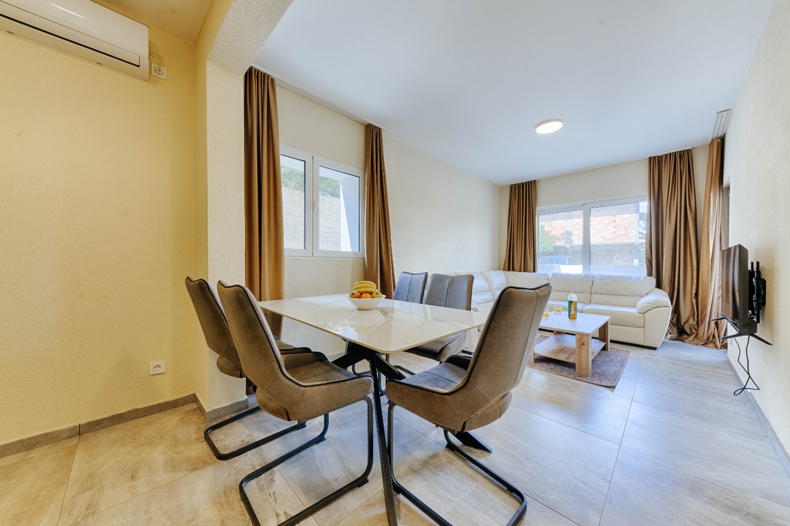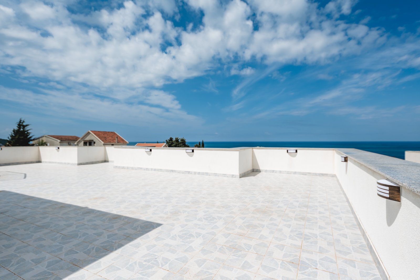 The property includes a garage with ten parking spaces, which is a significant advantage, especially in tourist areas. Additional value is provided by a spacious rooftop terrace with a swimming pool and sea view, offering excellent amenities for relaxation and enjoyment, as well as potential for creating shared facilities for guests.