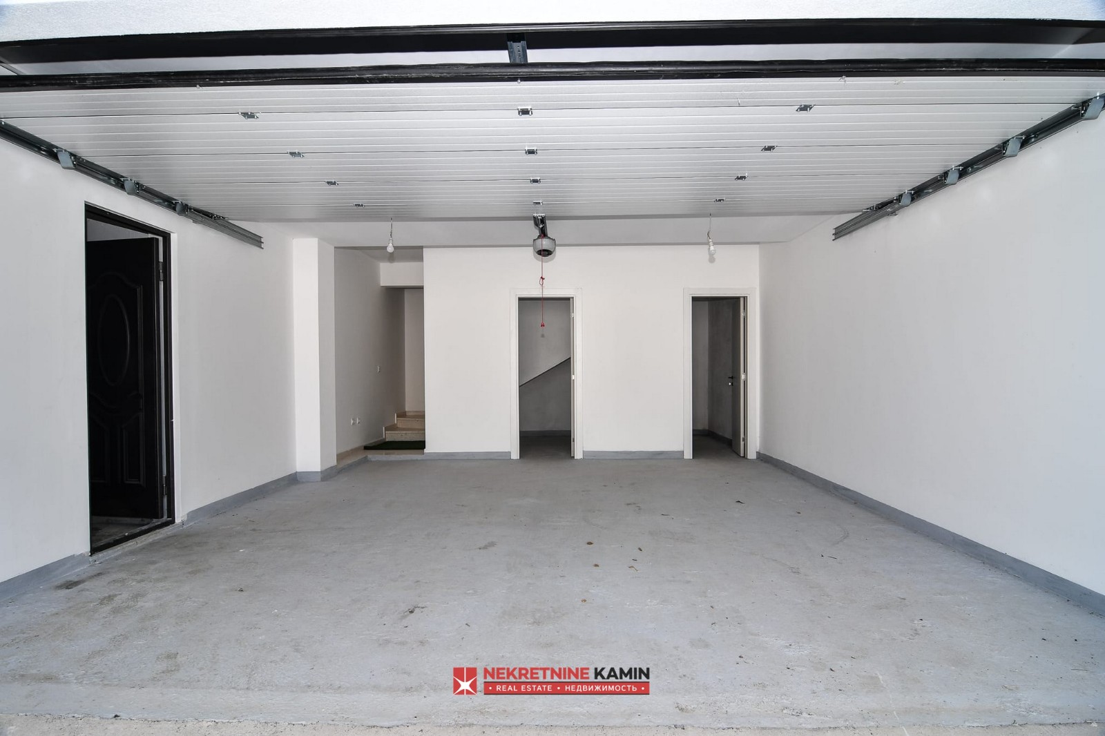 Suteren, površine 31 m², obuhvata garažu za dva automobila, tehničku prostoriju i dvije ostave. Garaža se otvara pomoću daljinskog upravljanja, dok je suteren unutarnjim stepenicama povezan s prizemljem vile.