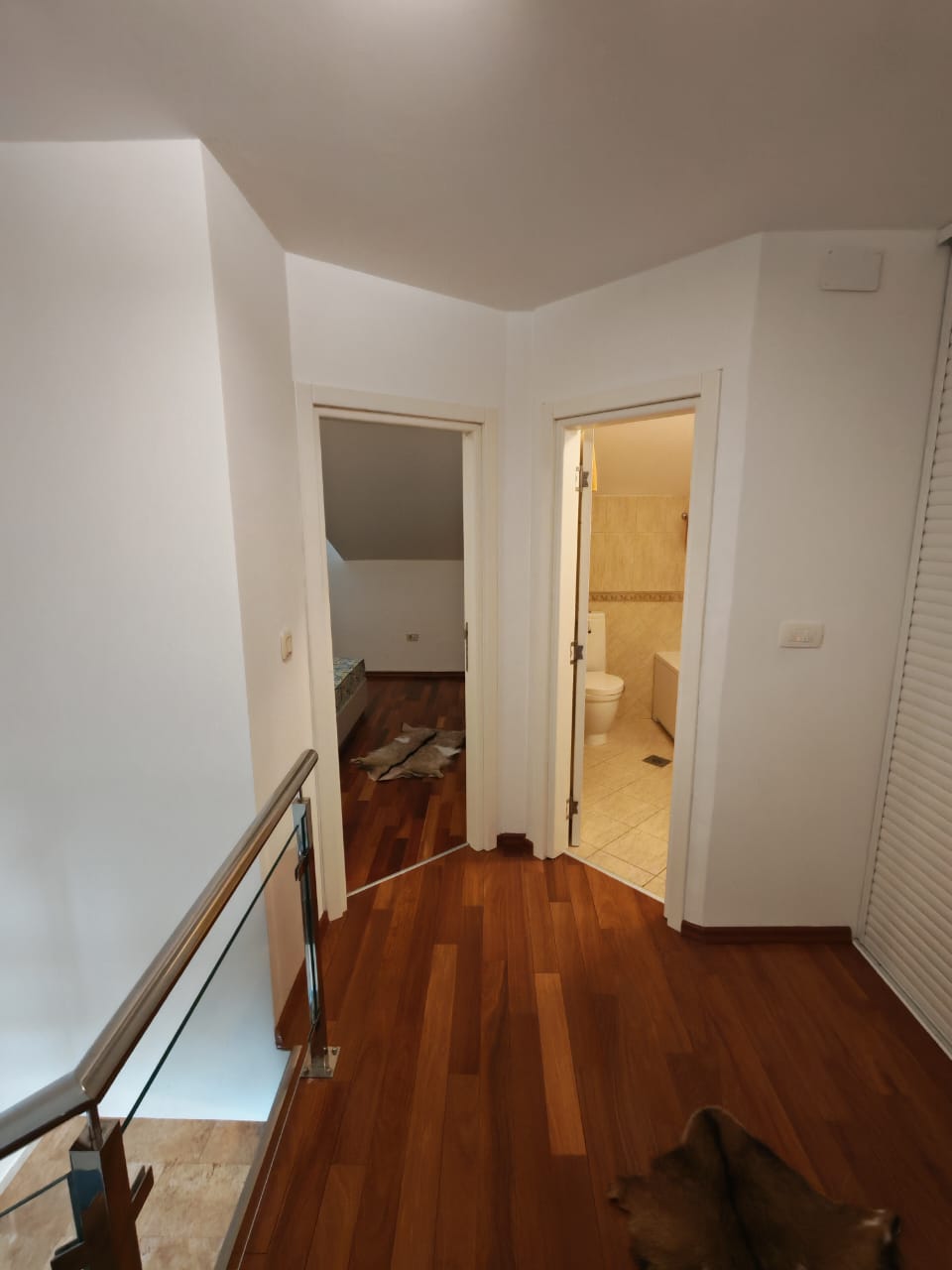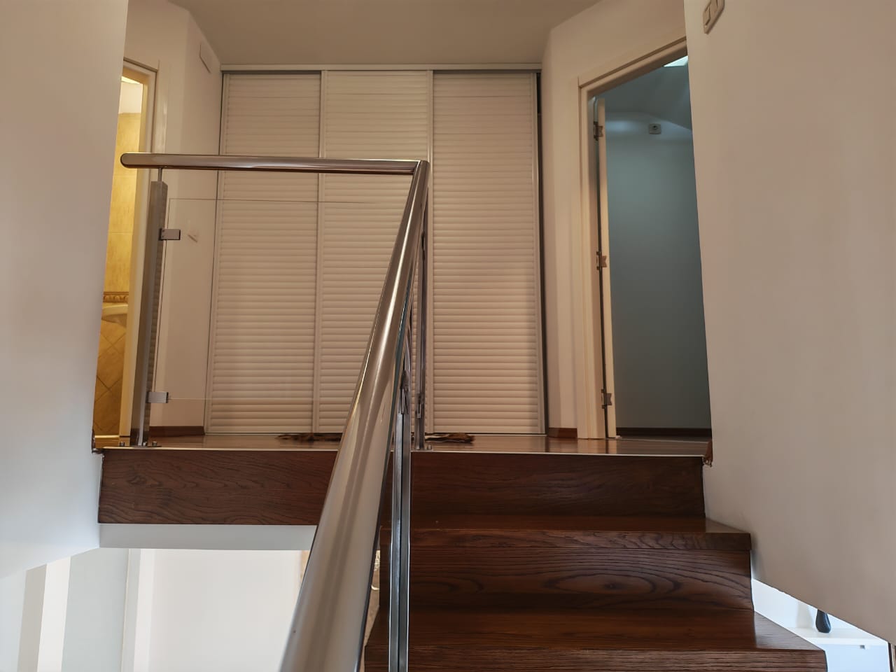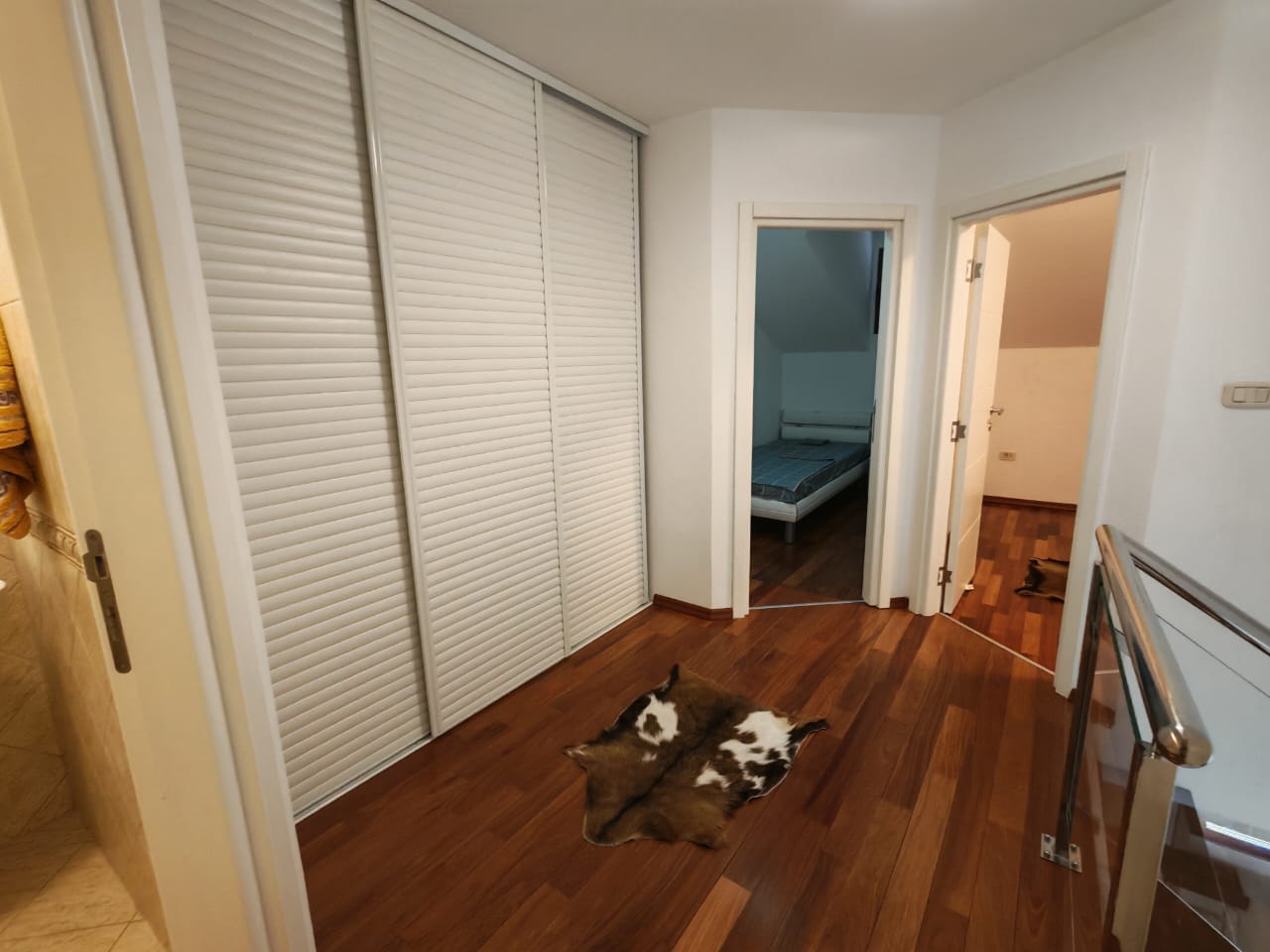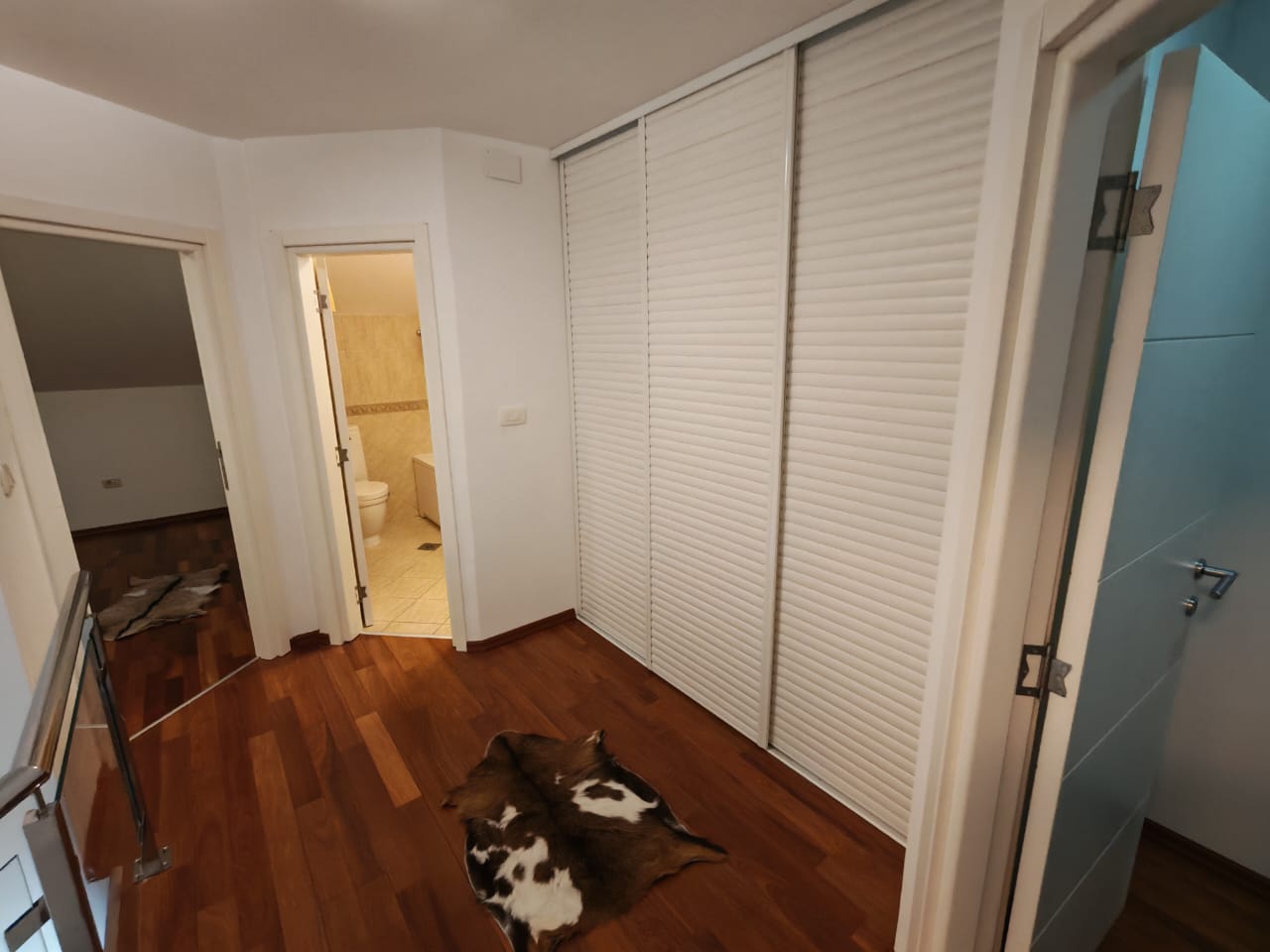 Stepenicama se izlazi do tri spavaće sobe koje spaja predsoblje sa velikim ugradnim plakarom.