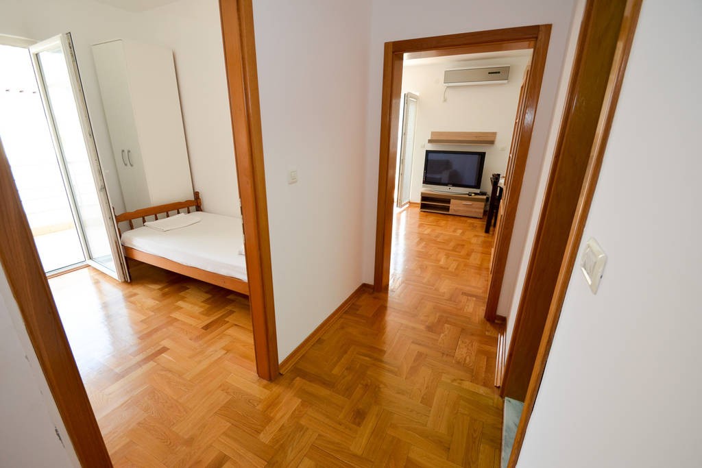 Raspored stana je funkcionalan i obuhvata hodnik, dvije komforne spavaće sobe, dnevni boravak sa izlazom na terasu, kupatilo i kuhinju. Terasa nudi prijatan pogled prema moru i na uređeno dvorište kompleksa.