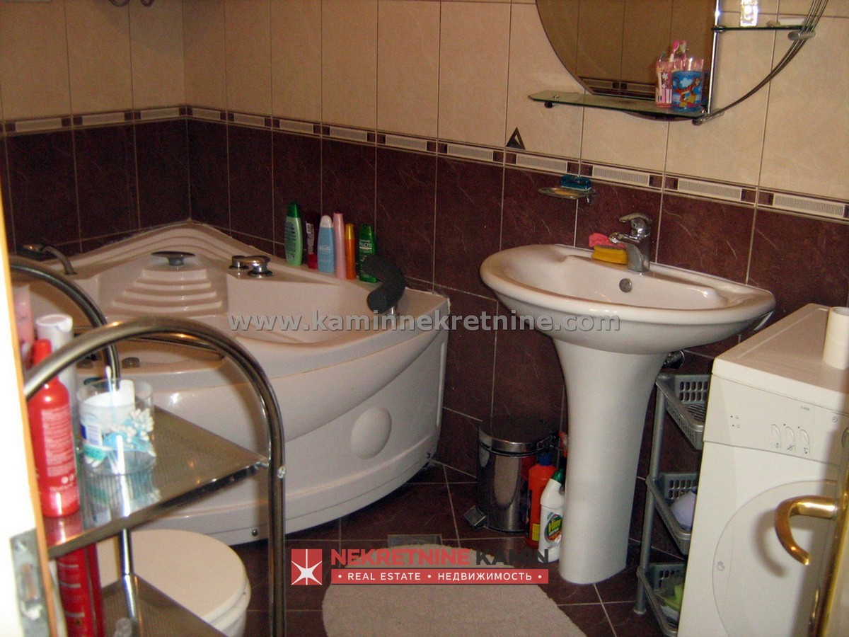Prodaje se dvojna kuća i oba dela imaju po 110m2 u osnovi + 2 aprtmana od ukupno 100m2 pa je ukupna površina ina kuće 320m2. Terasa koja se nalazi ispred apartmana ima 150m2, a ukupno zemljište je 1.300m2 + bašta od 250m2.
