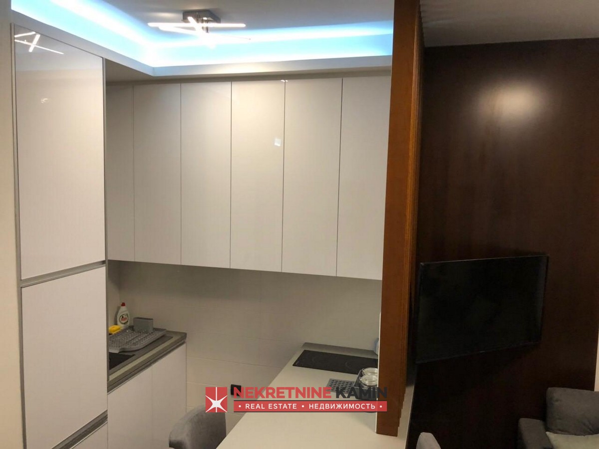 Rasporedjen je na dnevni boravak sa kuhinjom, spavaću sobu, kupatilo i terasu.