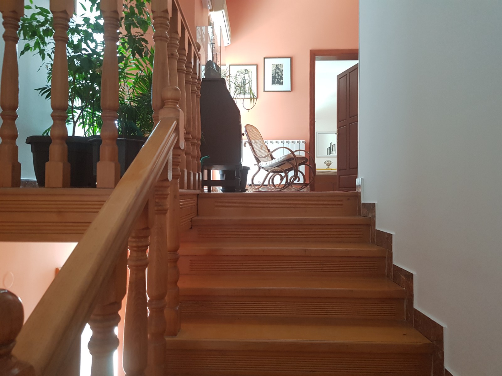 Unutrašnje drvene stepenice, vode do druge etaže u kojoj se nalazi hodnik, tri spavaće sobe(sve izlaze na veliku terasu) i kupatilo.