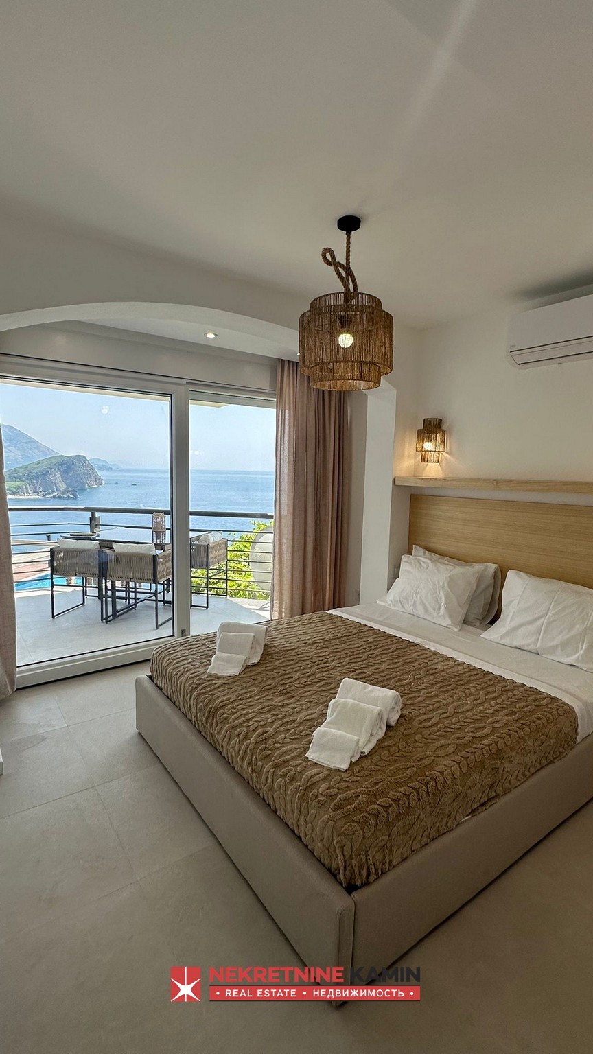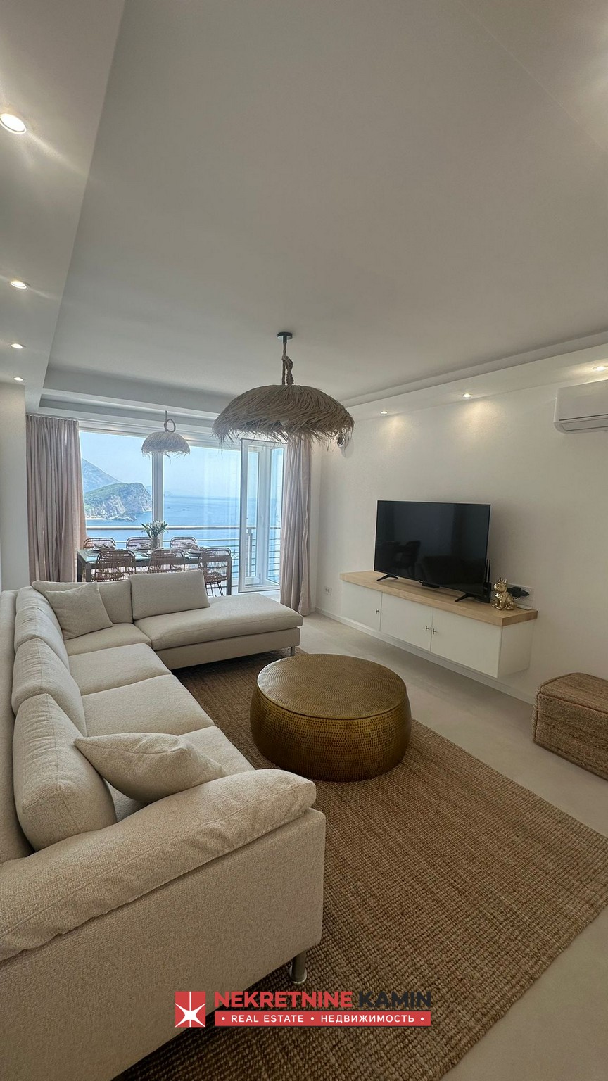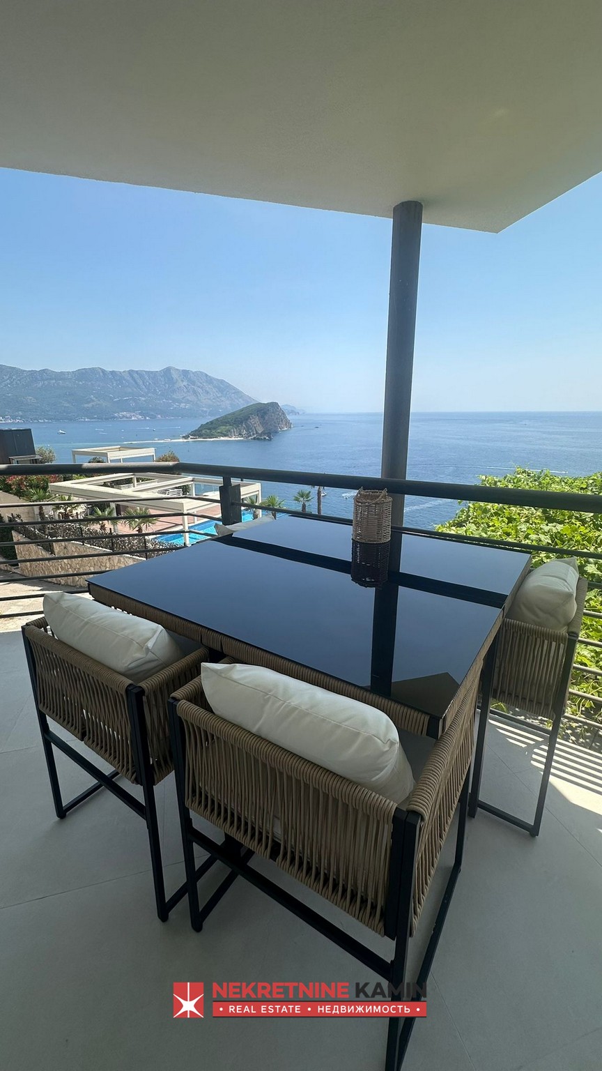 Na Vidikovcu iznad Budve, izdaje se potpuno renoviran dvosoban stan sa otvorenim pogledom na more i ostrvo Sveti Nikola.