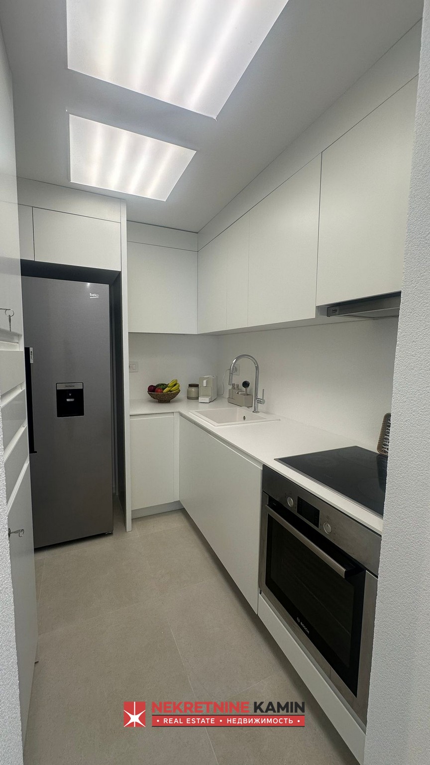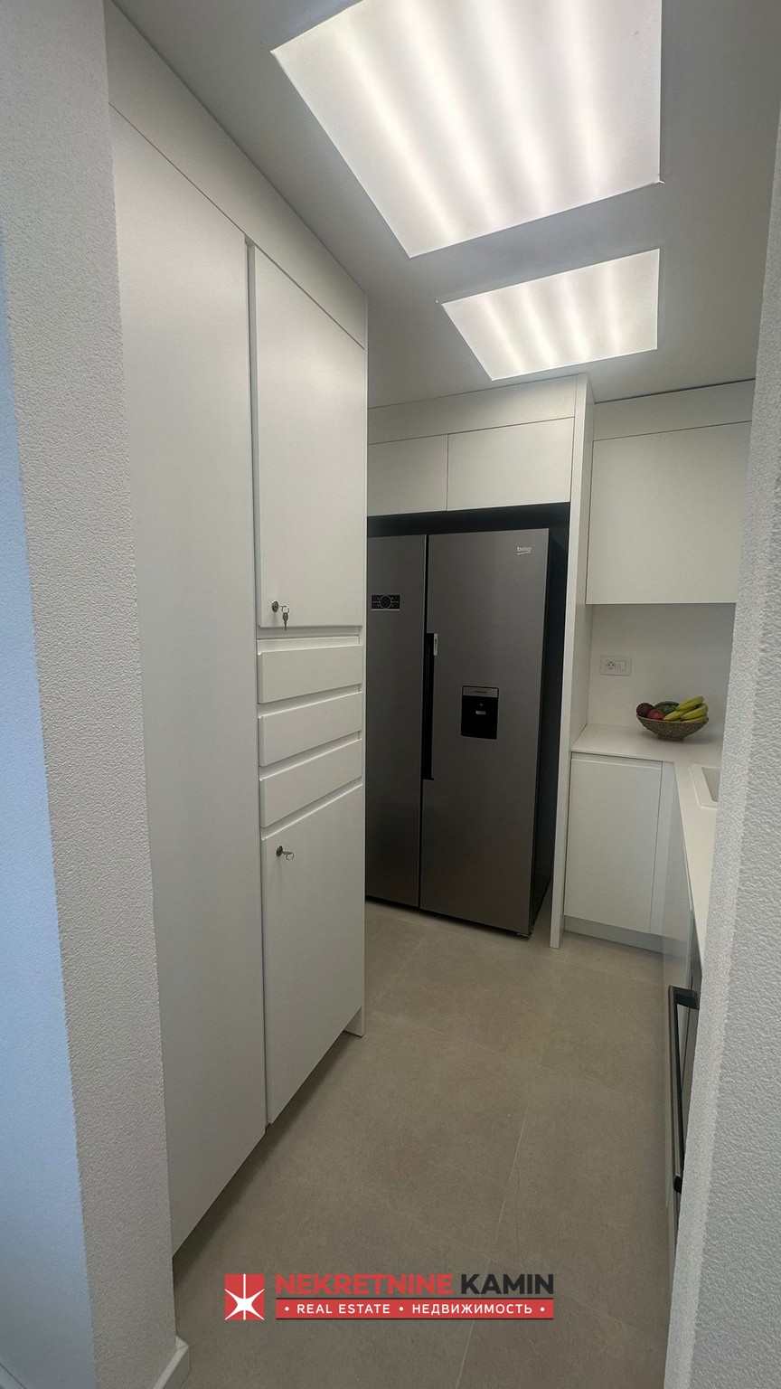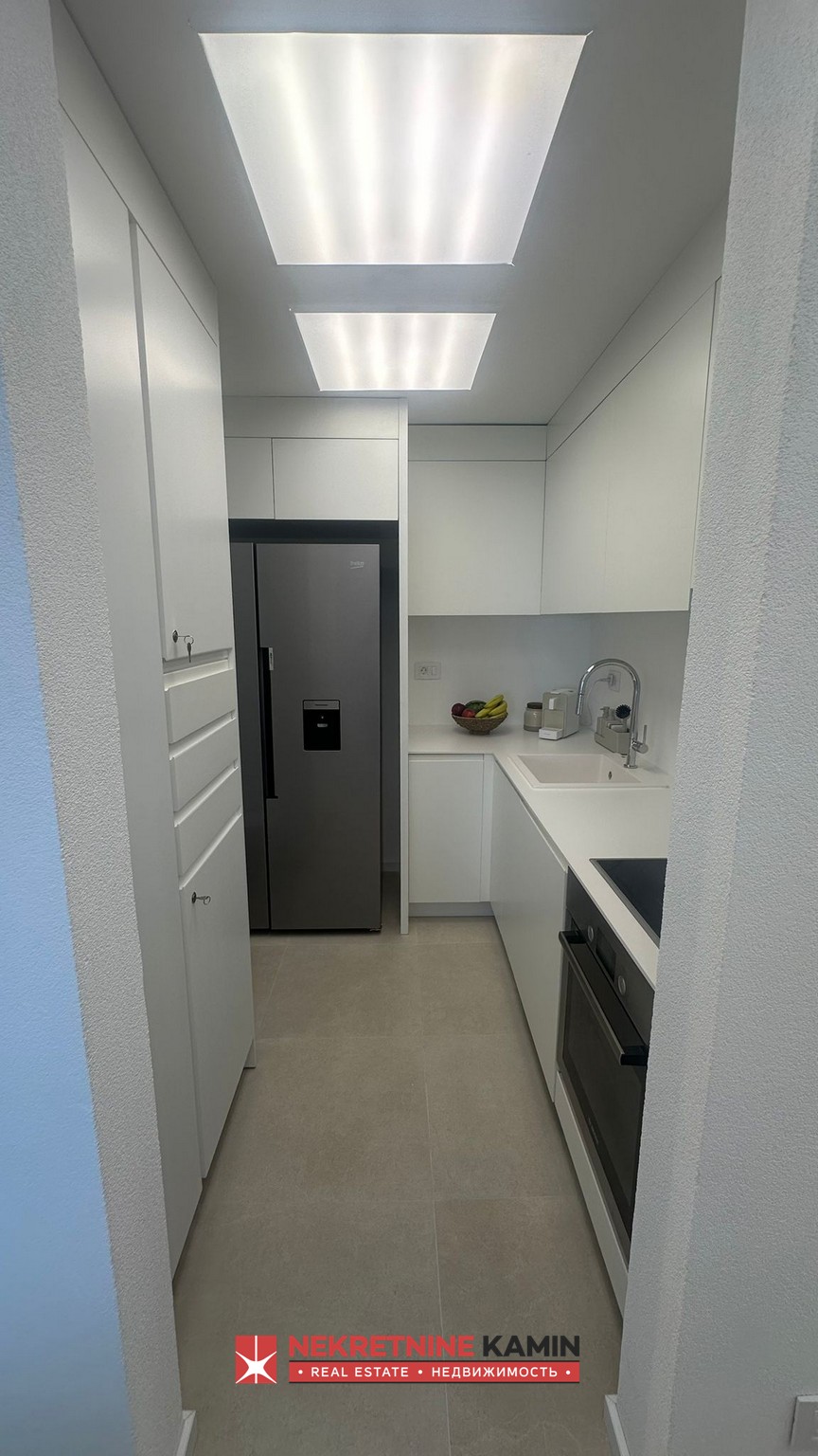 Ono što ovaj stan izdvaja jeste potpuna renovacija – od instalacija za vodu i struju, preko podova i plafona, do potpuno novog, kvalitetnog namještaja i bijele tehnike.