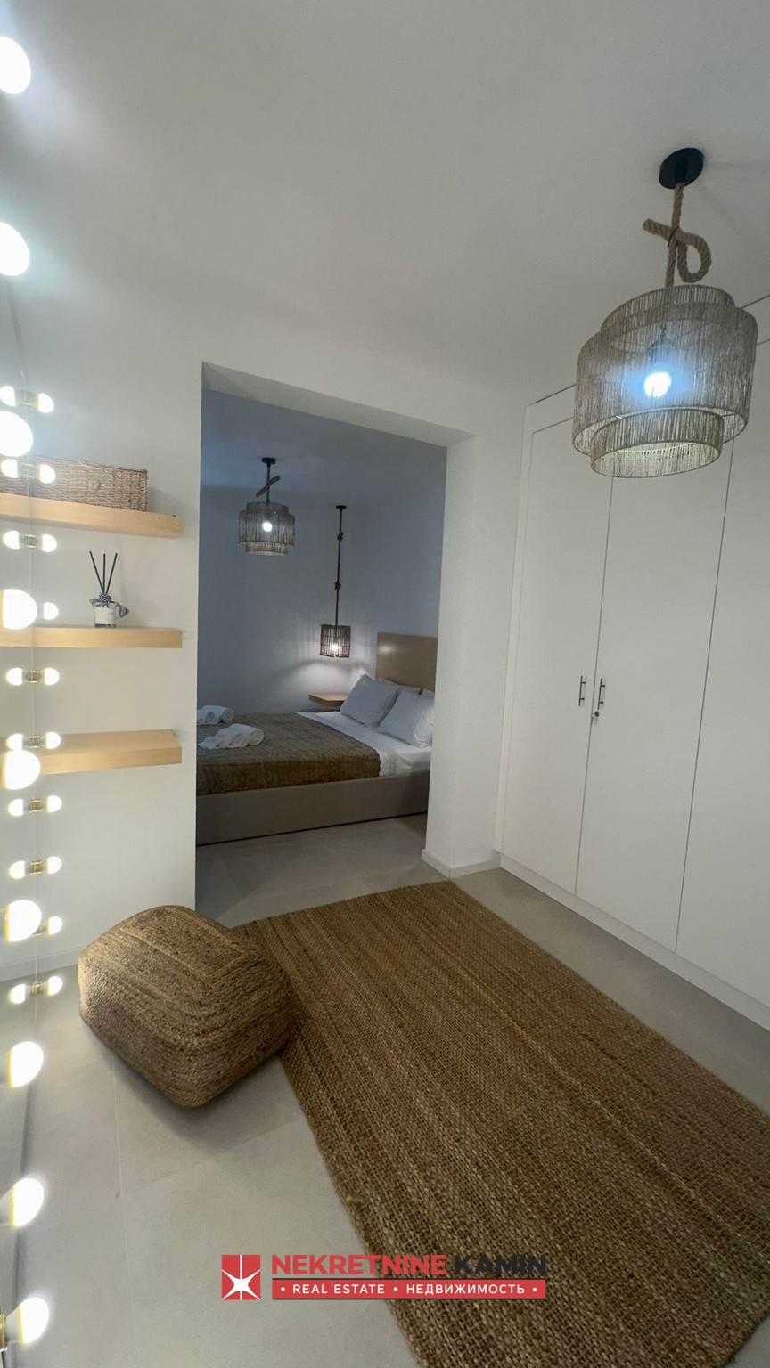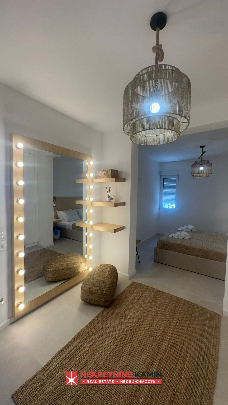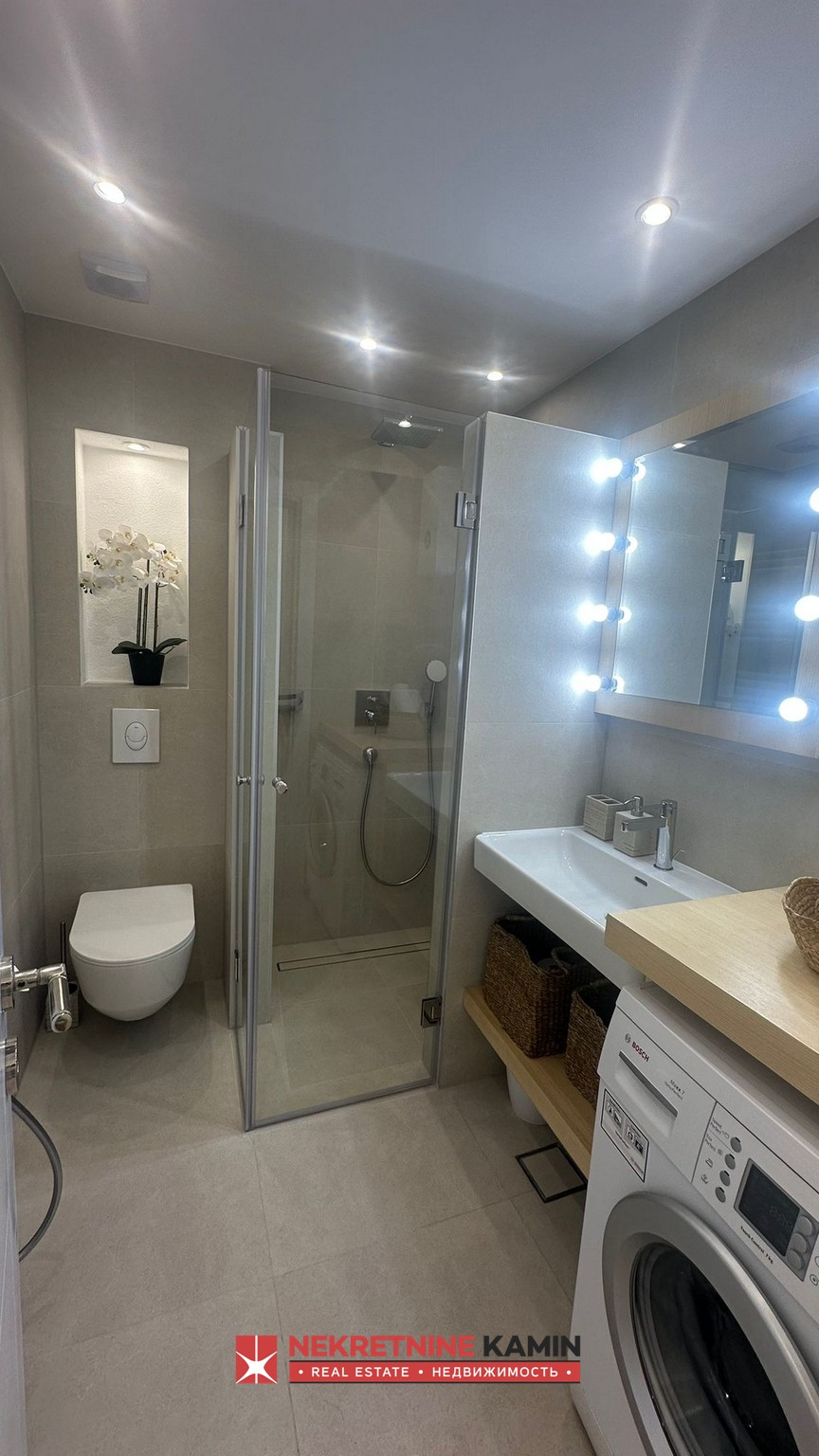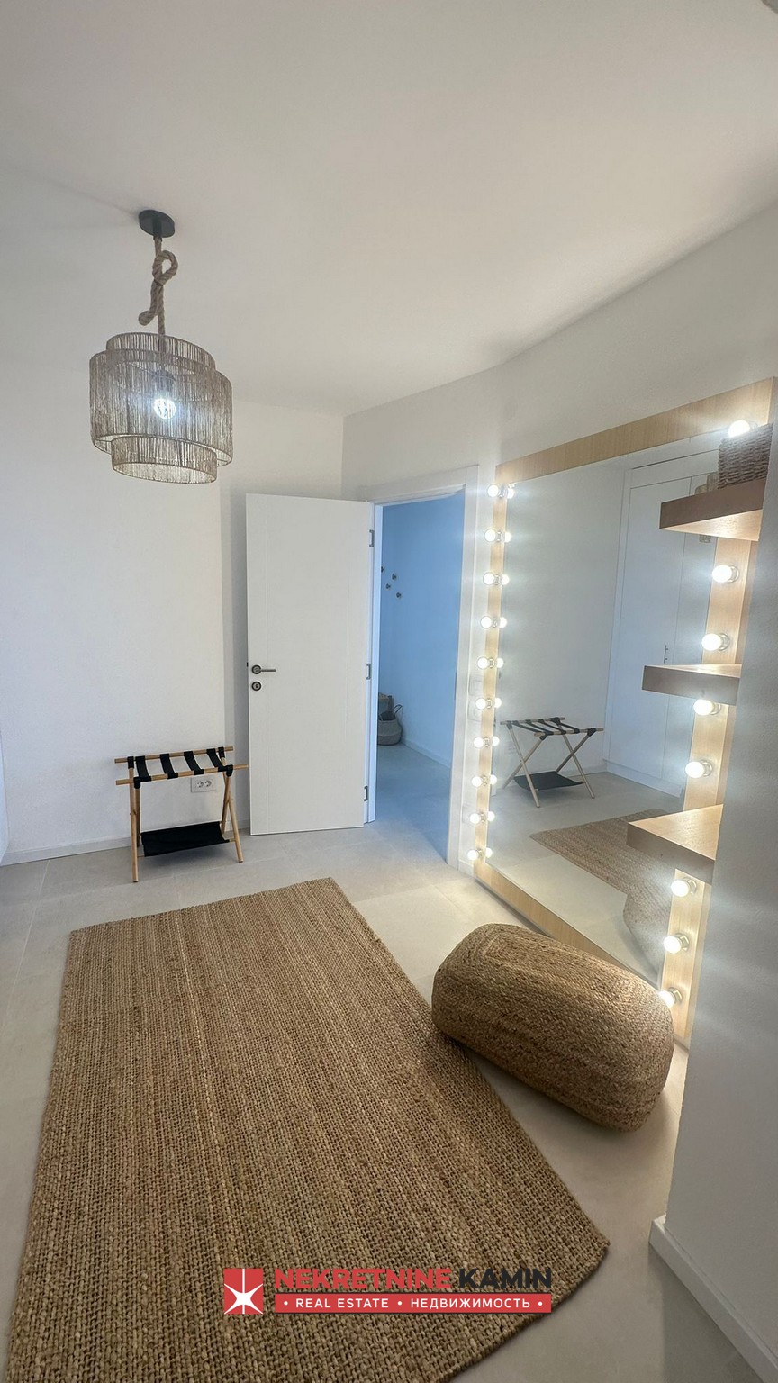 Ono što ovaj stan izdvaja jeste potpuna renovacija – od instalacija za vodu i struju, preko podova i plafona, do potpuno novog, kvalitetnog namještaja i bijele tehnike.