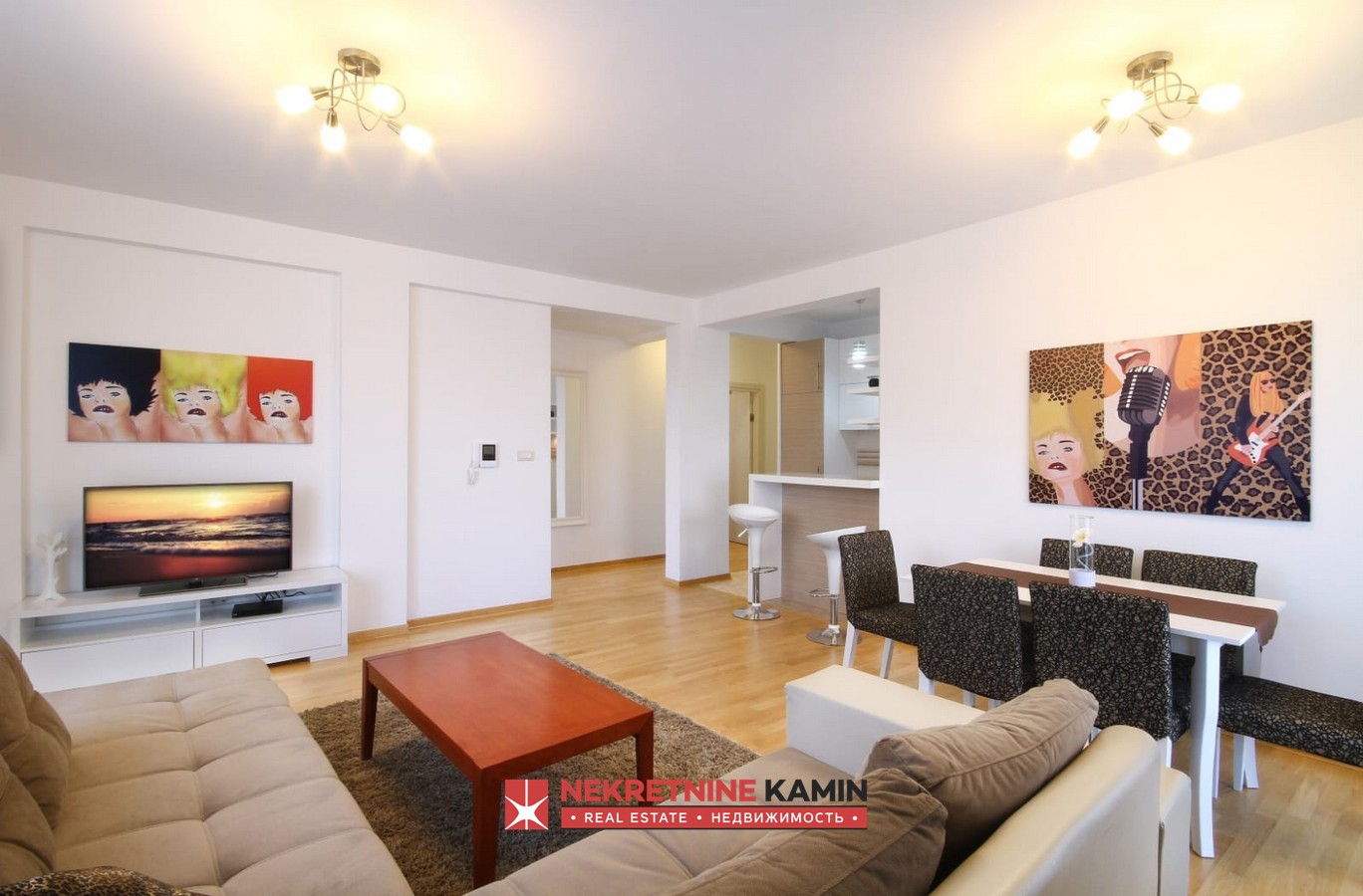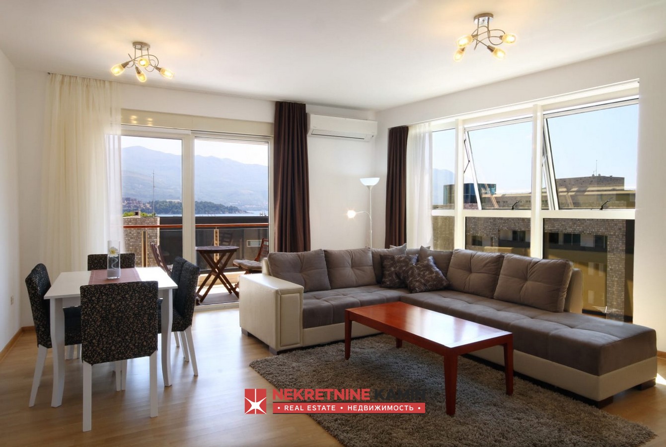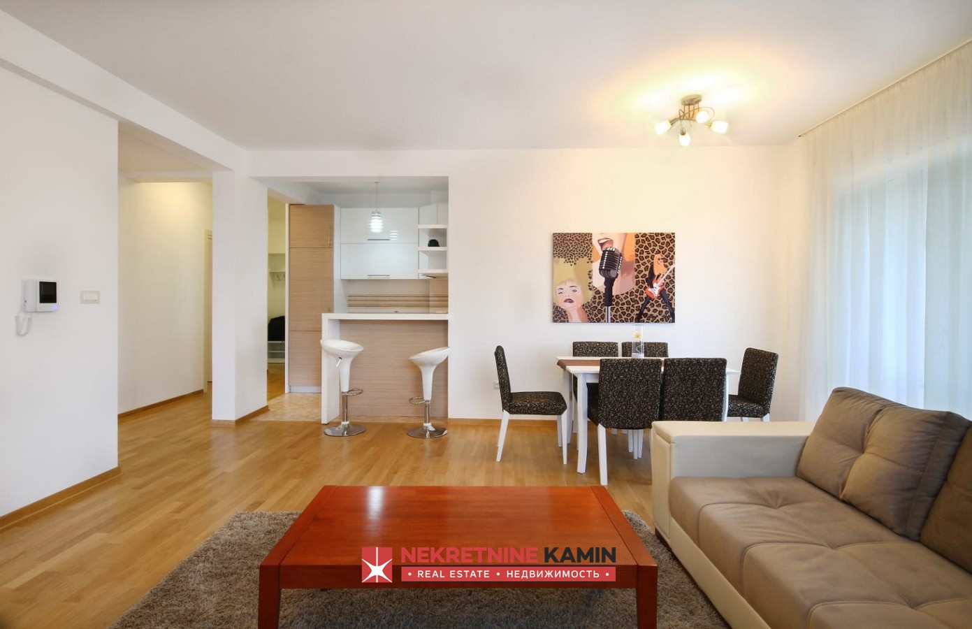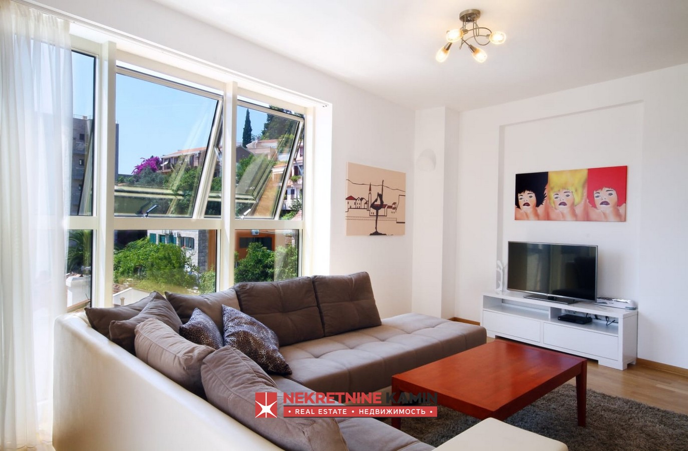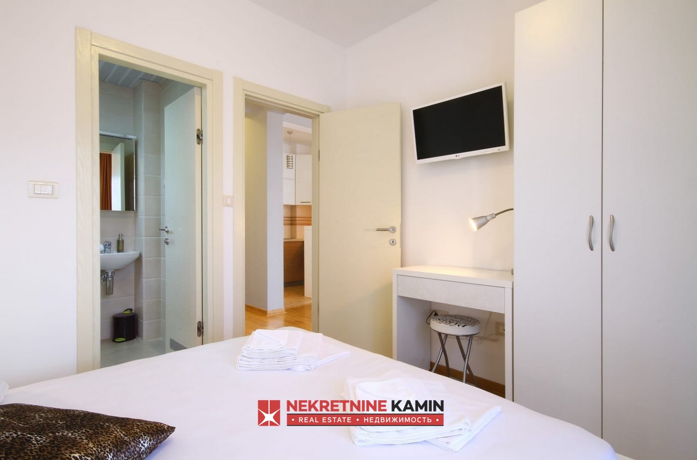 Izdaje se moderan i luksuzno opremljen dvosoban stan površine 75 m², koji se odlikuje pogledom na more i pažljivo osmišljenim rasporedom prostorija.