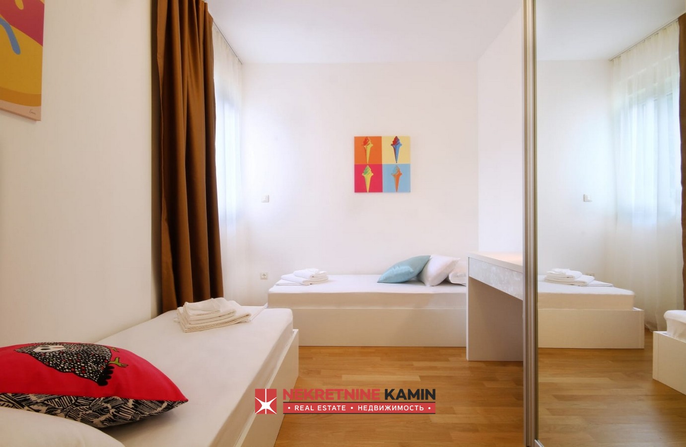 Ovaj stan je idealan za porodicu sa dvoje djece ili dva para, a kapacitet mu je do četiri osobe.