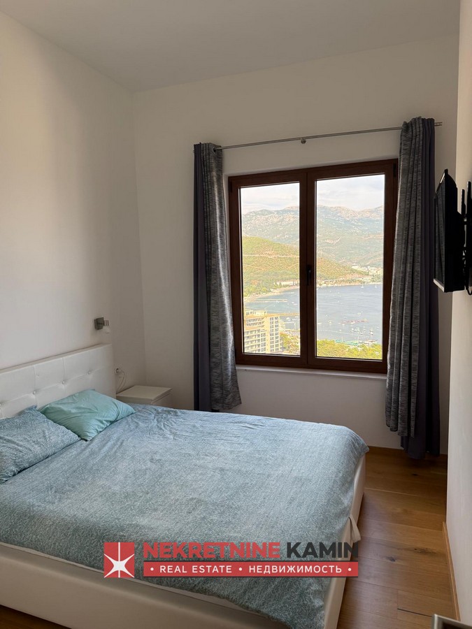 Izdaje se dvosoban stan sa panoramskim pogledom pored Adriatic College u Budvi.