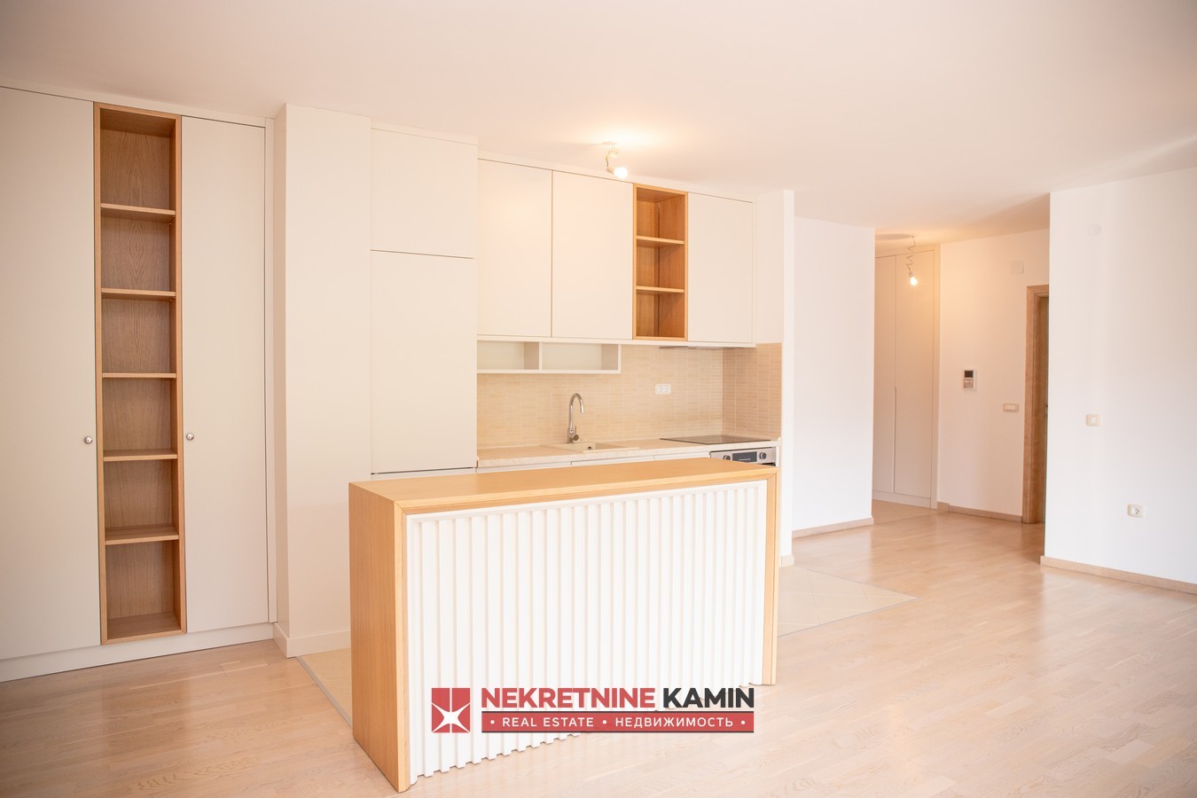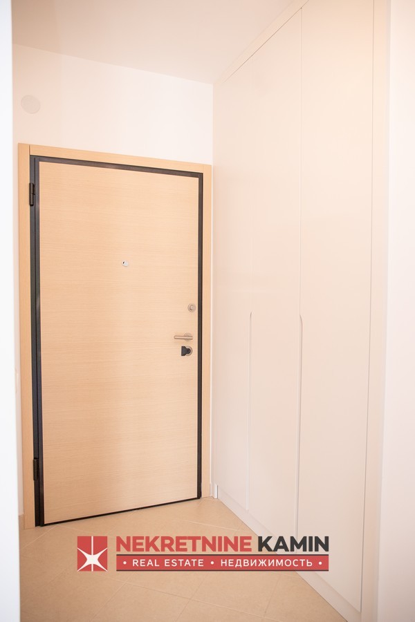 Sastoji se od dnevne sobe, kuhinje (komplet opremljena), dva kupatila, dvije spavaće sobe i dvije terase sa kojih se pruža pogled na more i grad.