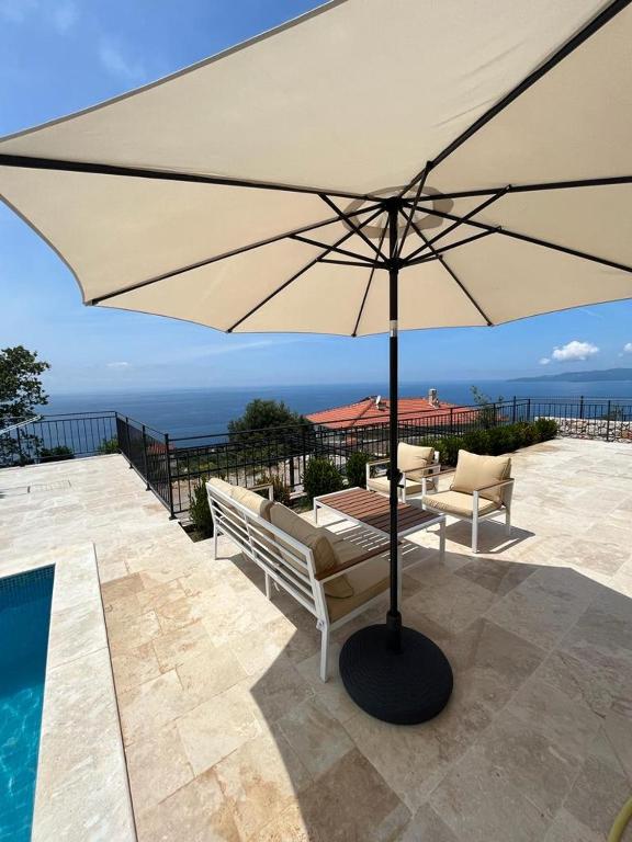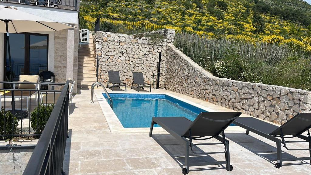 U dvorištu se nalazi elegantan bazen, okružen prostorom za relaksaciju, savršen za ljetnje trenutke odmora uz izvanredan pogled. Ispred vile obezbijeđena su četiri privatna parking mjesta.