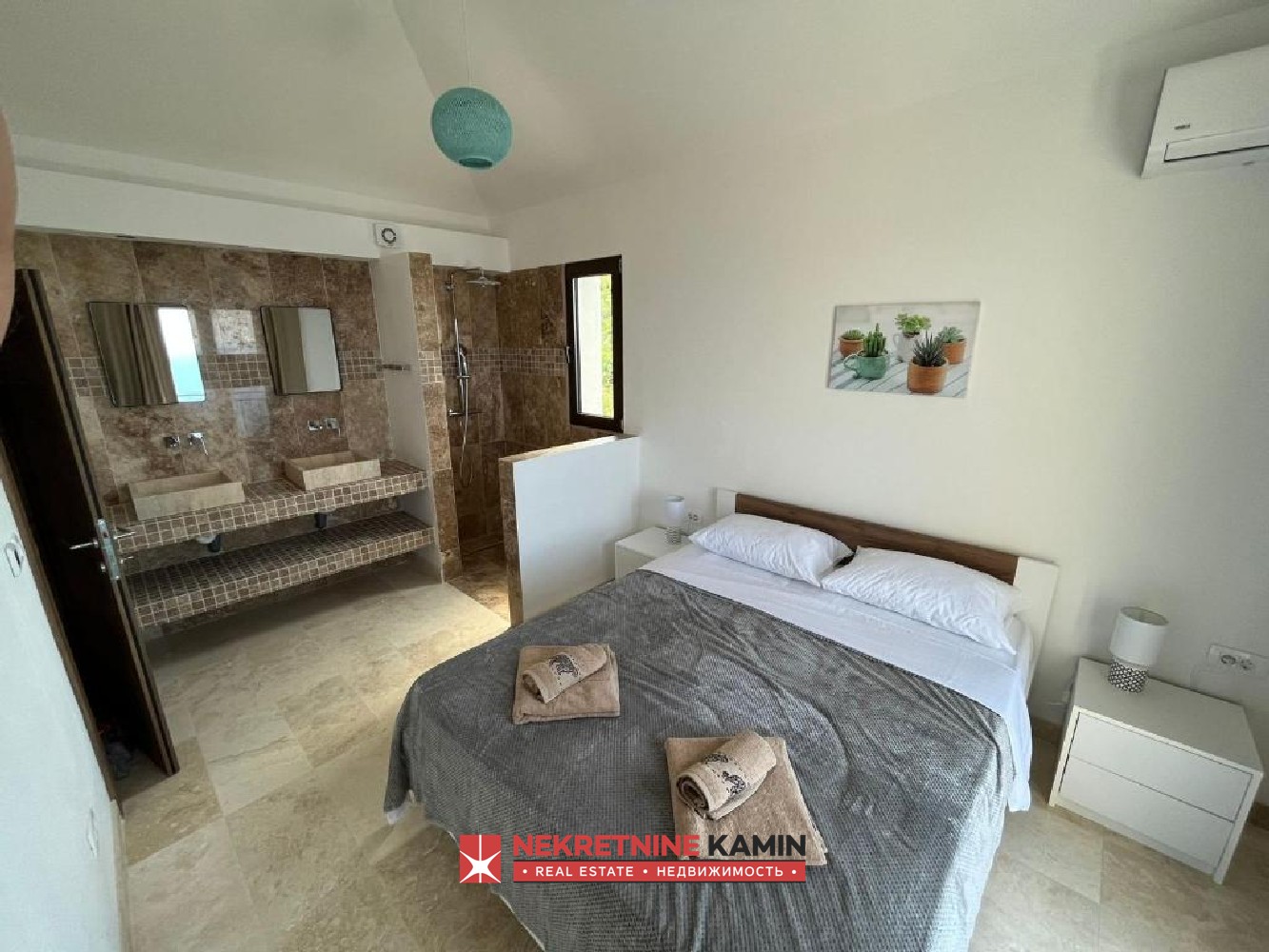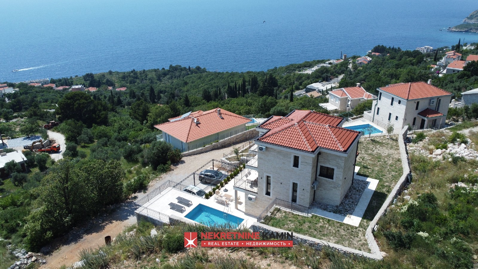 Na prodaju je ekskluzivna kamena vila u Reževićima, smještena na prestižnoj lokaciji iznad glavnog puta, sa neometanim panoramskim pogledom na more i okolni pejzaž. Vila zauzima površinu od 203m² i nalazi se na uređenoj parceli od 478 m².