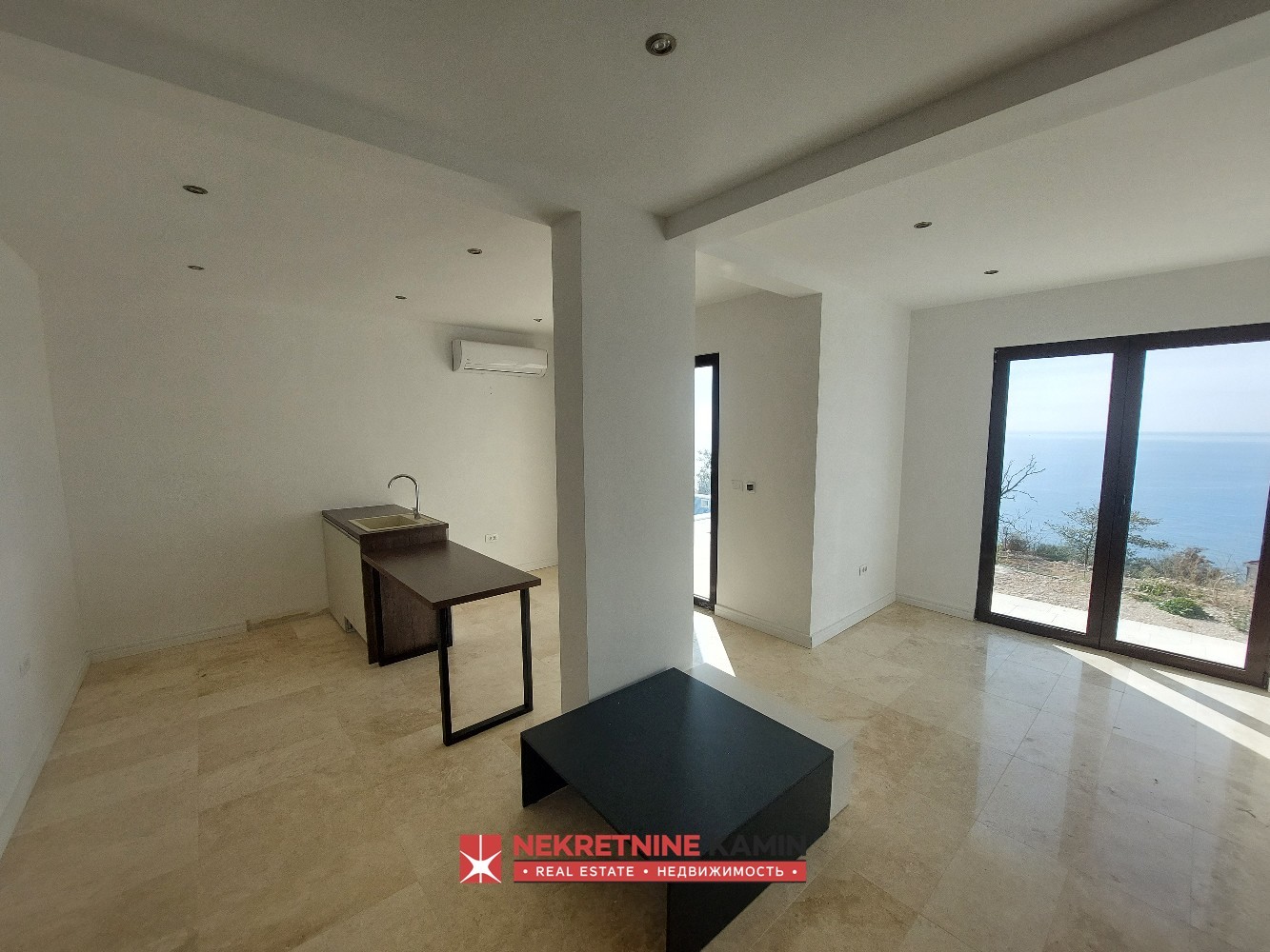 Prizemlje funkcioniše kao potpuno opremljena cjelina – jednosoban stan sa prostranim dnevnim boravkom, kuhinjom, udobnom spavaćom sobom, kupatilom, ostavom i tehničkom prostorijom. Trenutno se ovaj nivo koristi kao prostorije za skladištenje mobilijara. Iz ovog dijela pruža se direktan izlaz na dvorište koje vodi prema bazenu i terasi sa pogledom na more.