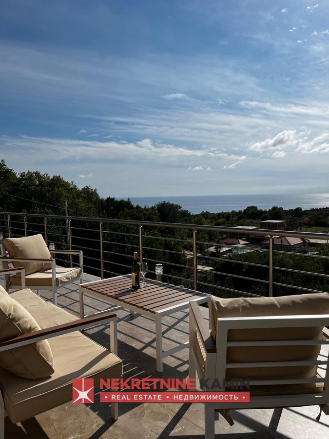 Satoji se od hodnika, dnevne sobe sa kuhinjom i trpezarijom, spavaće sobe, kupatila i terase sa bazenom sa kog se pruža prelijep pogled na more.