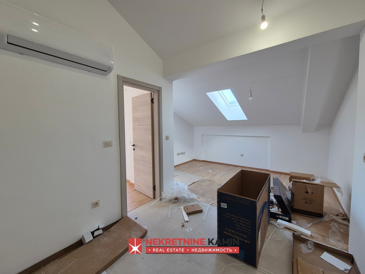 Kuhinja i kupatilo opremljeni su podnim grijanjem, što doprinosi dodatnoj udobnosti, dok velika krovna terasa pruža mogućnost uživanja na otvorenom tokom većeg dijela godine.