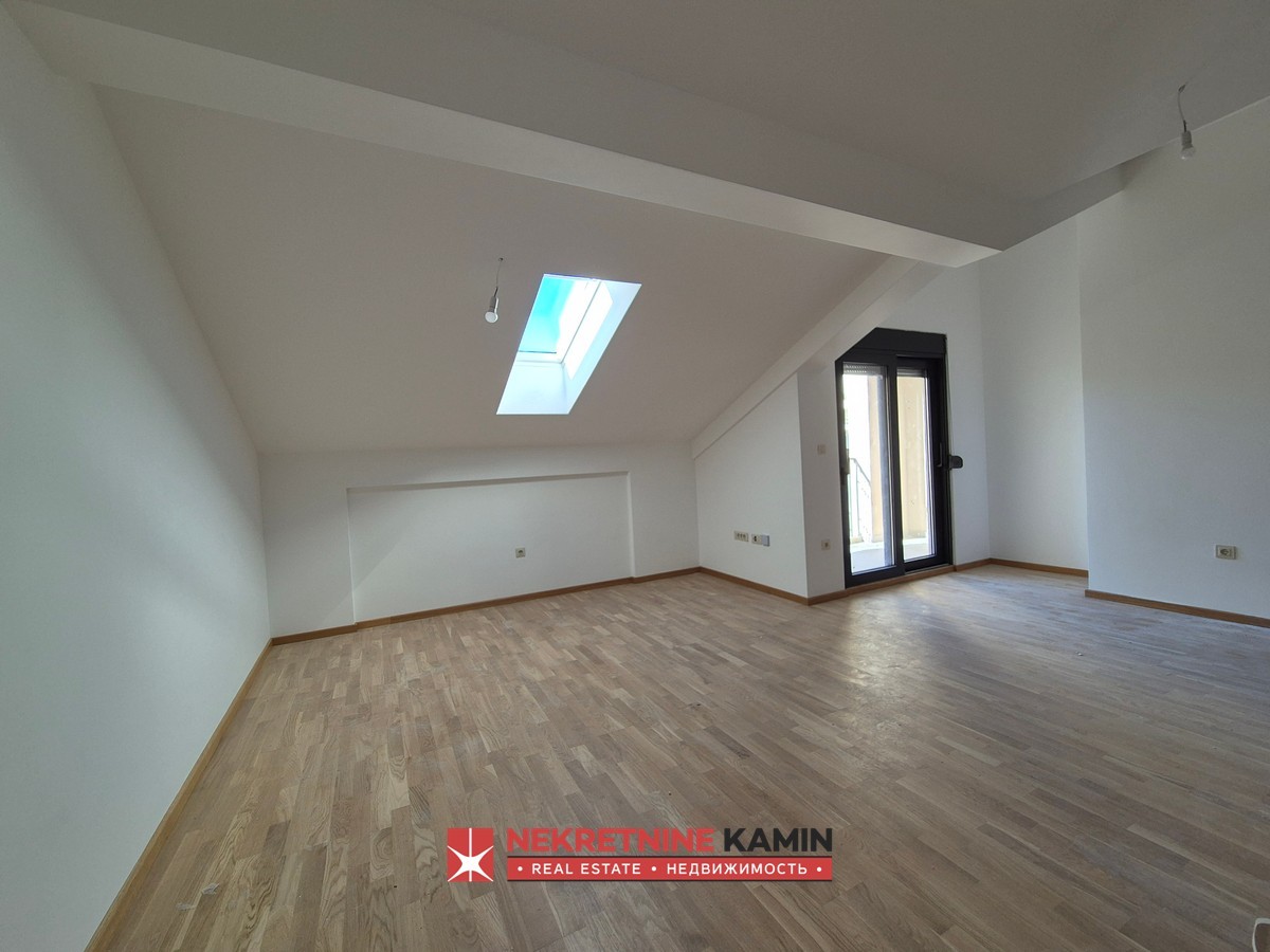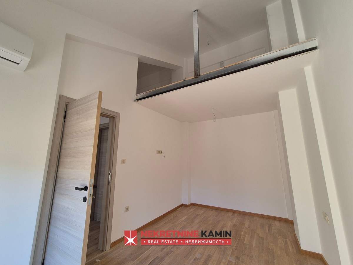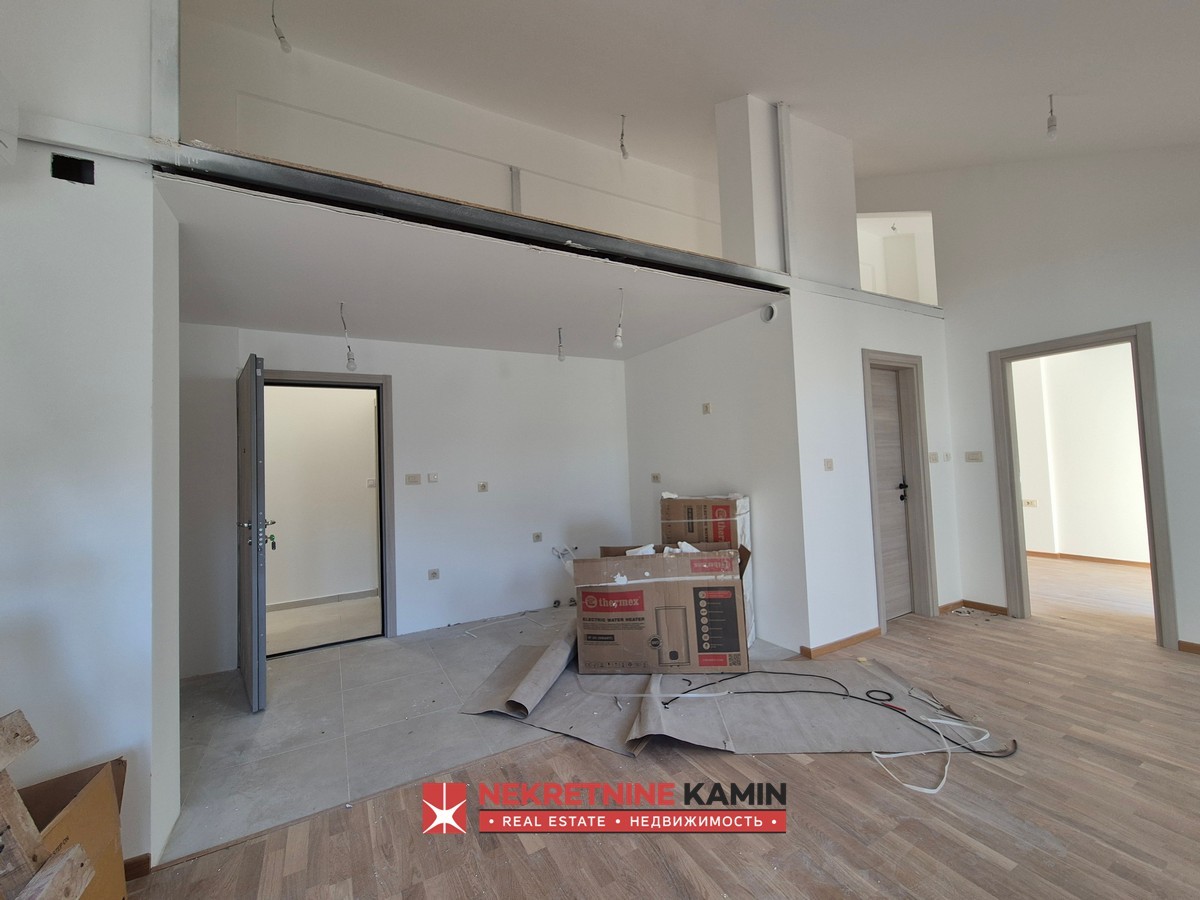 Prodaje se prostran i moderan jednosoban stan površine 71 m², sa dodatnom galerijom od 18 m² koja se prostire duž cijelog stana – iznad dnevne i iznad spavaće sobe.
