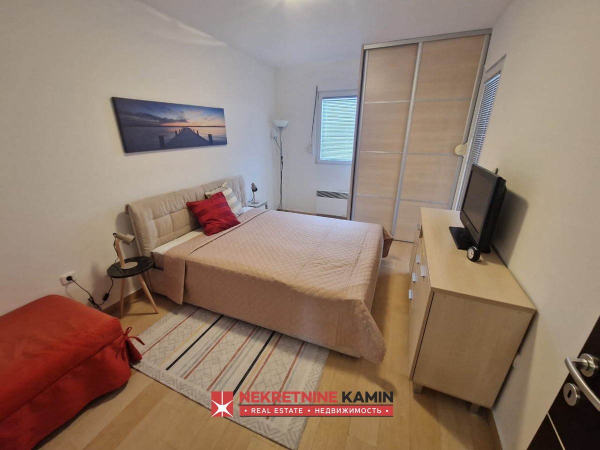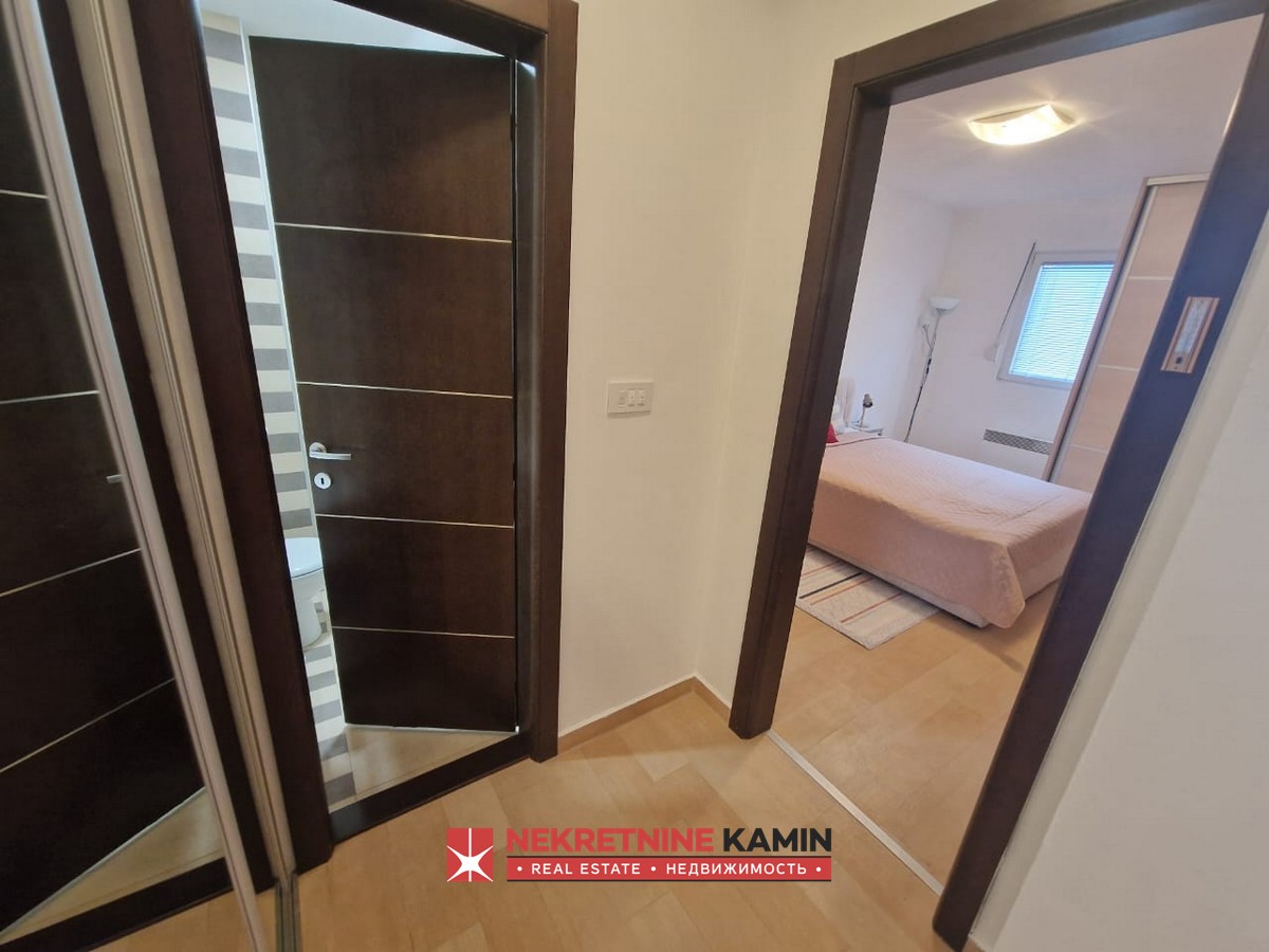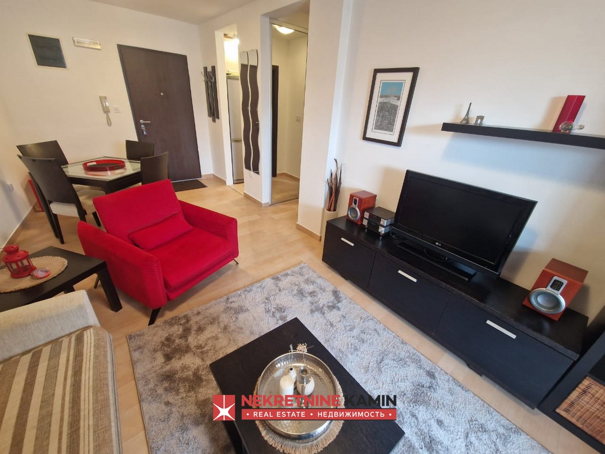 Raspored je funkcionalan i udoban za dugoročno stanovanje. Sastoji se od dnevnog boravka sa trpezarijom, zidom odvojene kuhinje, spavaće sobe, kupatila i terase na koju se izlazi iz obje sobe – i dnevne i spavaće. Stan je opremljen svim neophodnim elementima i spreman za useljenje.