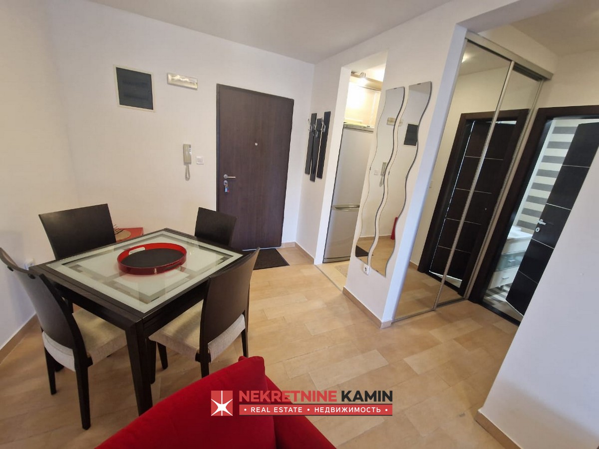 Izdaje se potpuno opremljen jednosoban stan površine 46 m², smješten u kvalitetnoj stambenoj zgradi sa liftom, u mirnom i traženom naselju Babin Do u Budvi. Stan se nalazi na trećem spratu i južno je orijentisan, što ga čini izuzetno toplim, svijetlim i osunčanim tokom cijelog dana.