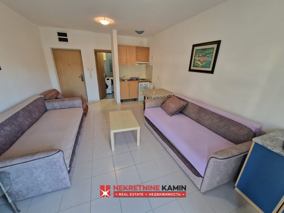Garsonjera se sastoji od dnevnog boravka sa kuhinjom, kupatila I terase. Idealna je za jednu osobu ili par koji želi praktičan prostor na odličnoj lokaciji, u blizini plaže, marketa i svih svakodnevnih sadržaja.