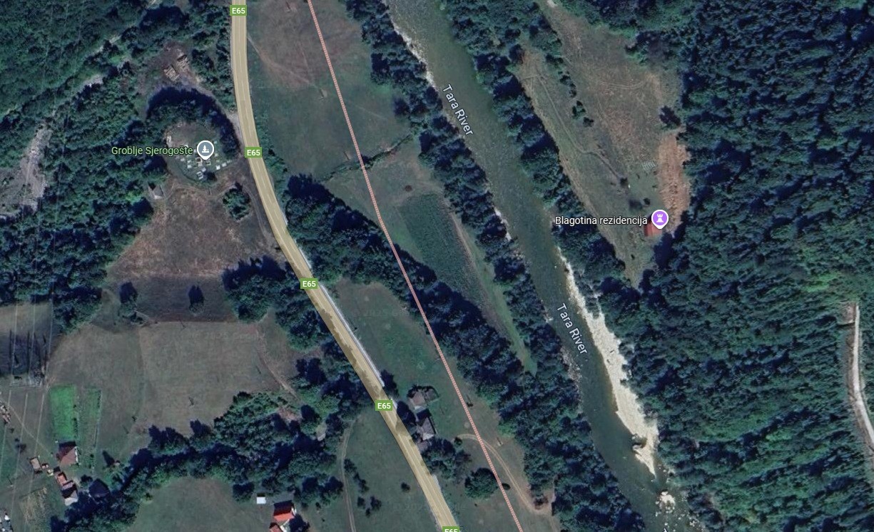 Plac se nalazi uz samu obalu reke Tare, jedne od najčistijih i najlepših reka u Evropi, poznate po spektakularnom kanjonu i netaknutoj prirodi. Parcela ima direktan izlaz na reku u dužini od približno 350metara, što joj daje posebnu ekskluzivnost i jedinstvenu vrednost.