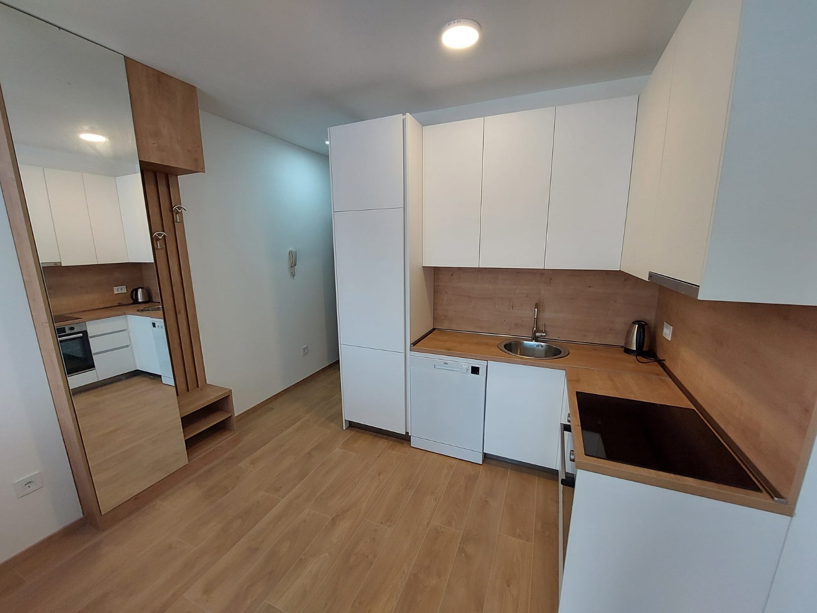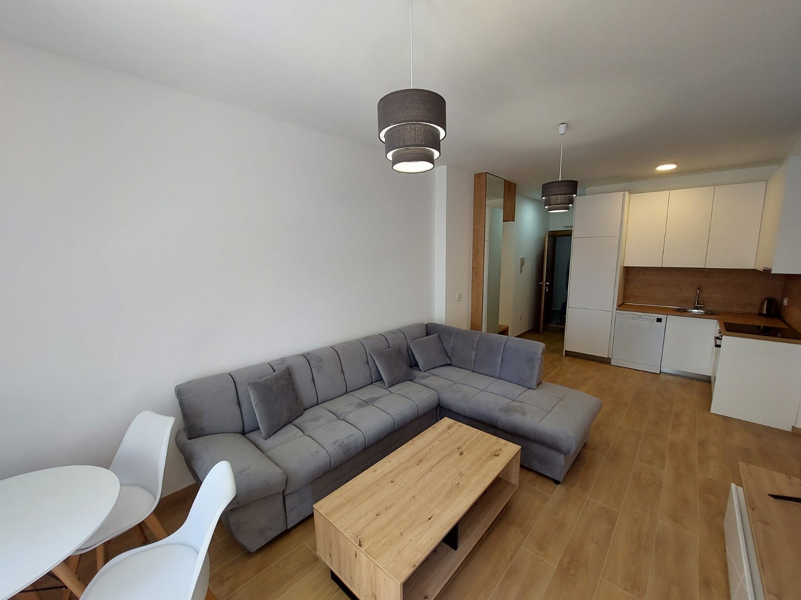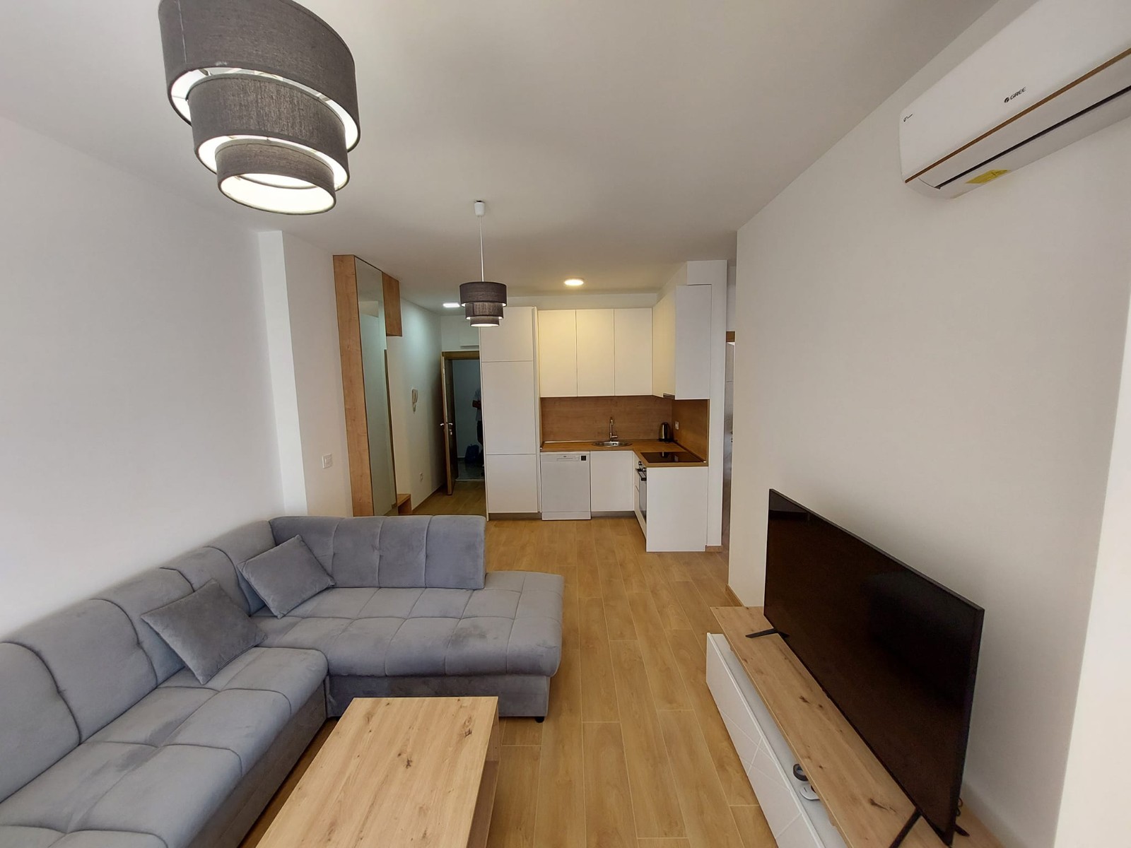 Na prodaju je moderno opremljen dvosoban stan površine 51 m², smešten na drugom spratu nove i kvalitetno građene stambene zgrade sa liftom, u Budvi.