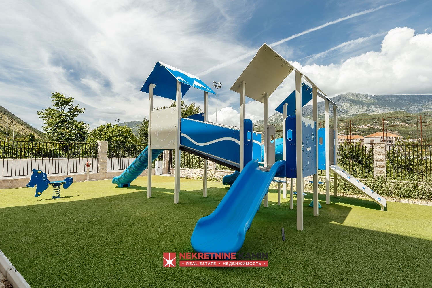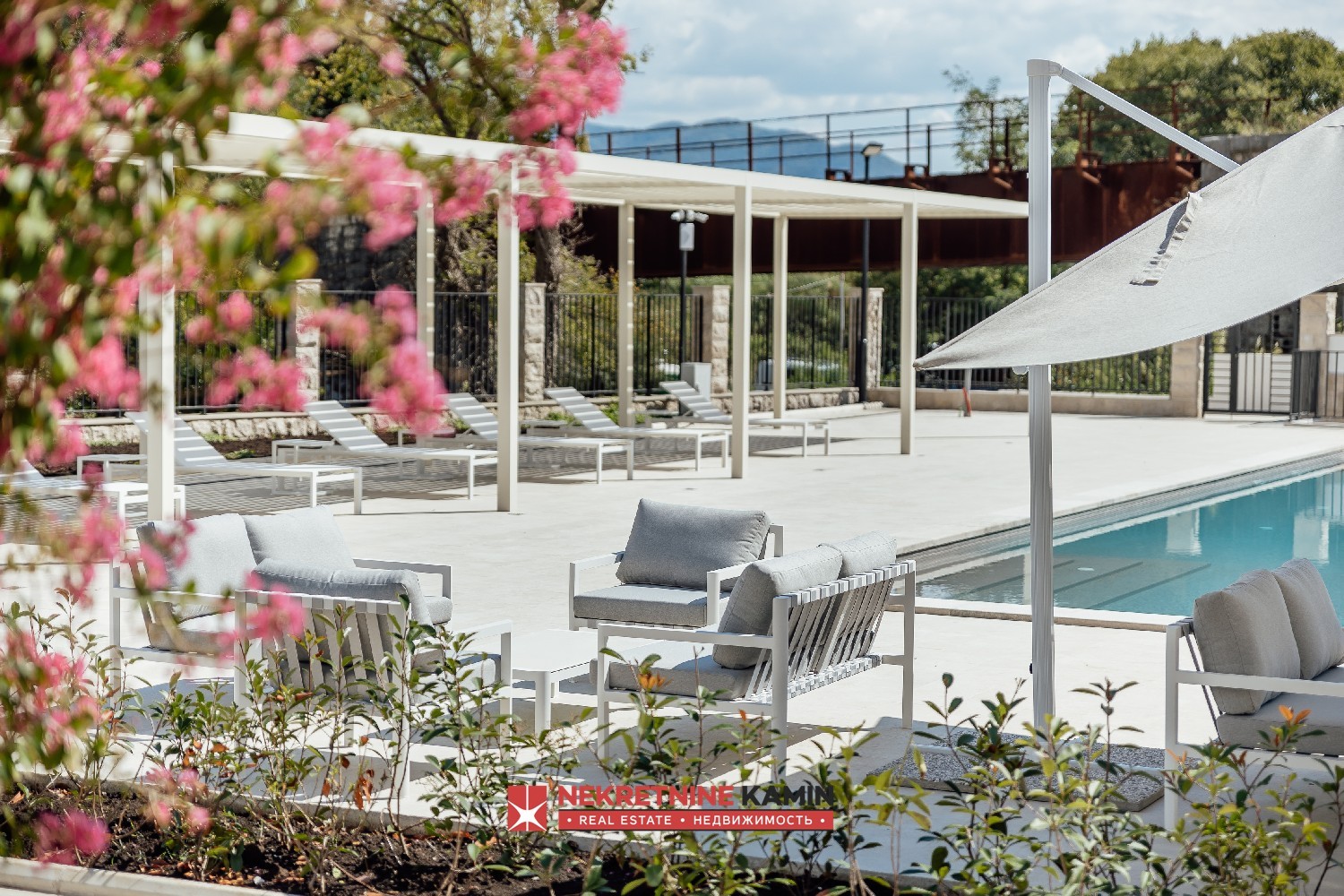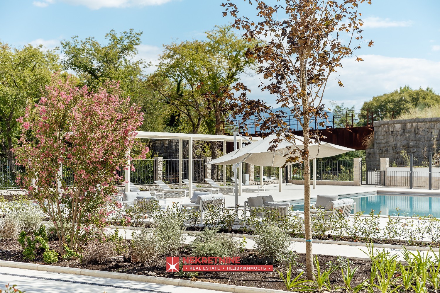 Kompleks se sastoji od ukupno 69 apartmana raspoređenih u četiri moderne zgrade i nudi bogat sadržaj koji omogućava komforan život i kvalitetan boravak tokom cele godine. Stanarima su na raspolaganju otvoreni grejani bazen sa posebnim dečijim delom, restoran sa mediteranskom kuhinjom, roštilj zona, dečije igralište, teretana, sauna, vešeraj, podzemni parking, kao i privatna luka sa čamcem za izlete. Vlasnicima stanova obezbeđen je i besplatan transfer čamcem od aerodroma do rezidencije.