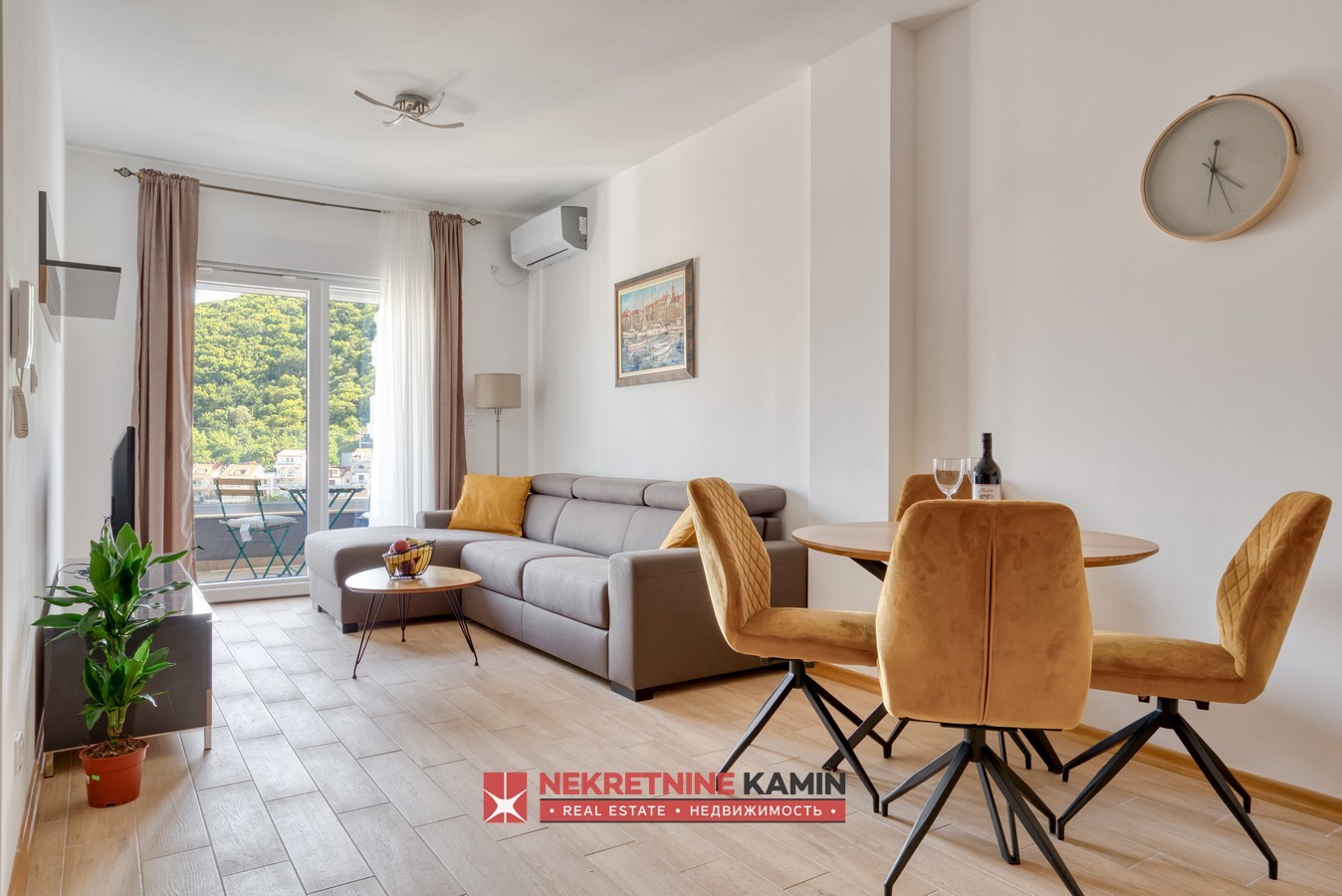 Jednosoban stan, prva linija do mora, RafailovićiPovršina stana: 52m2Hodnik, dnevni boravak, kuhinja, kupatilo, spavaća soba, velika terasa...