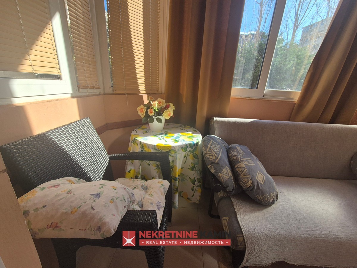 Jednosoban stan, prva linija do mora, RafailovićiPovršina stana: 52m2Hodnik, dnevni boravak, kuhinja, kupatilo, spavaća soba, velika terasa...