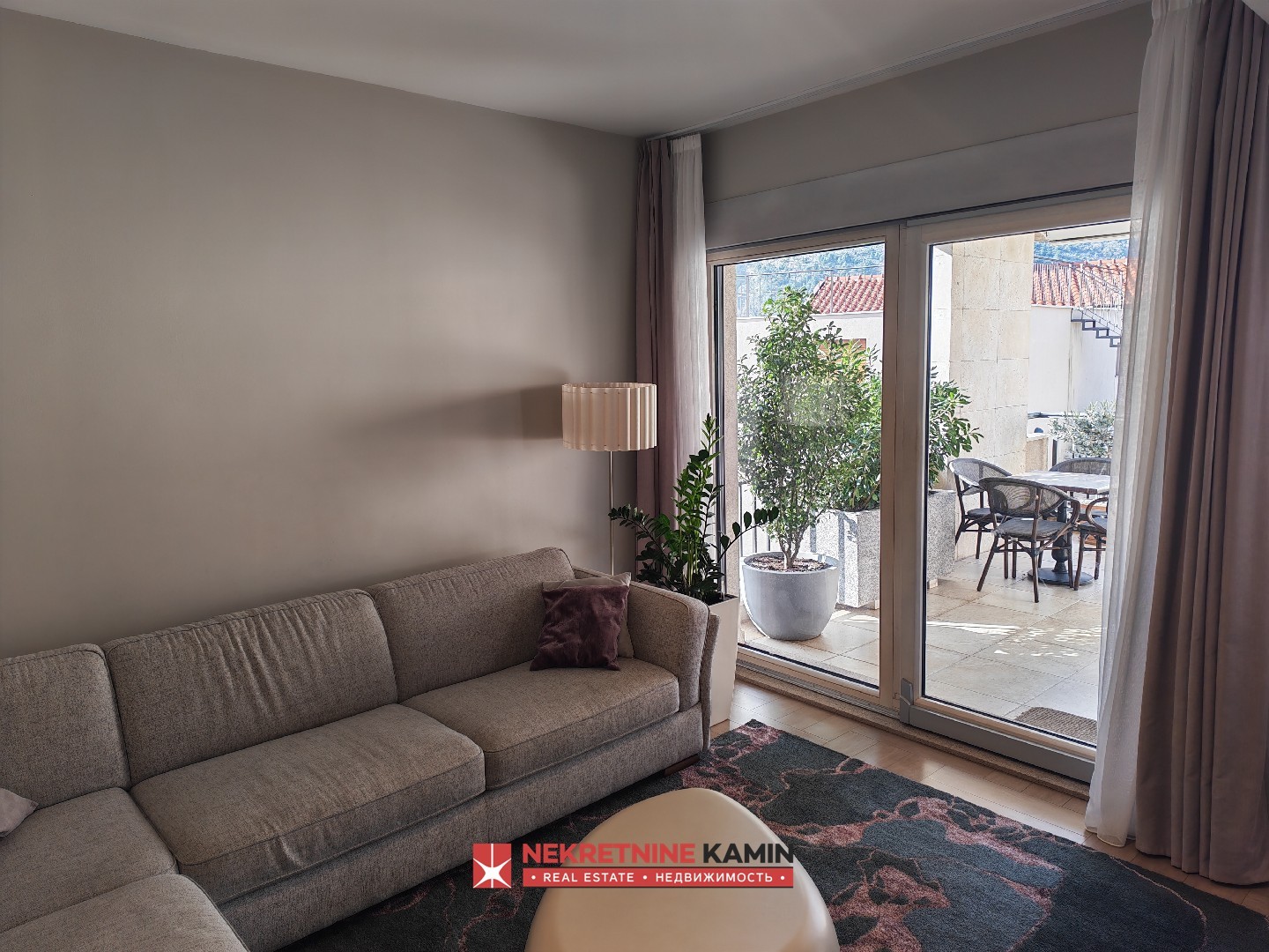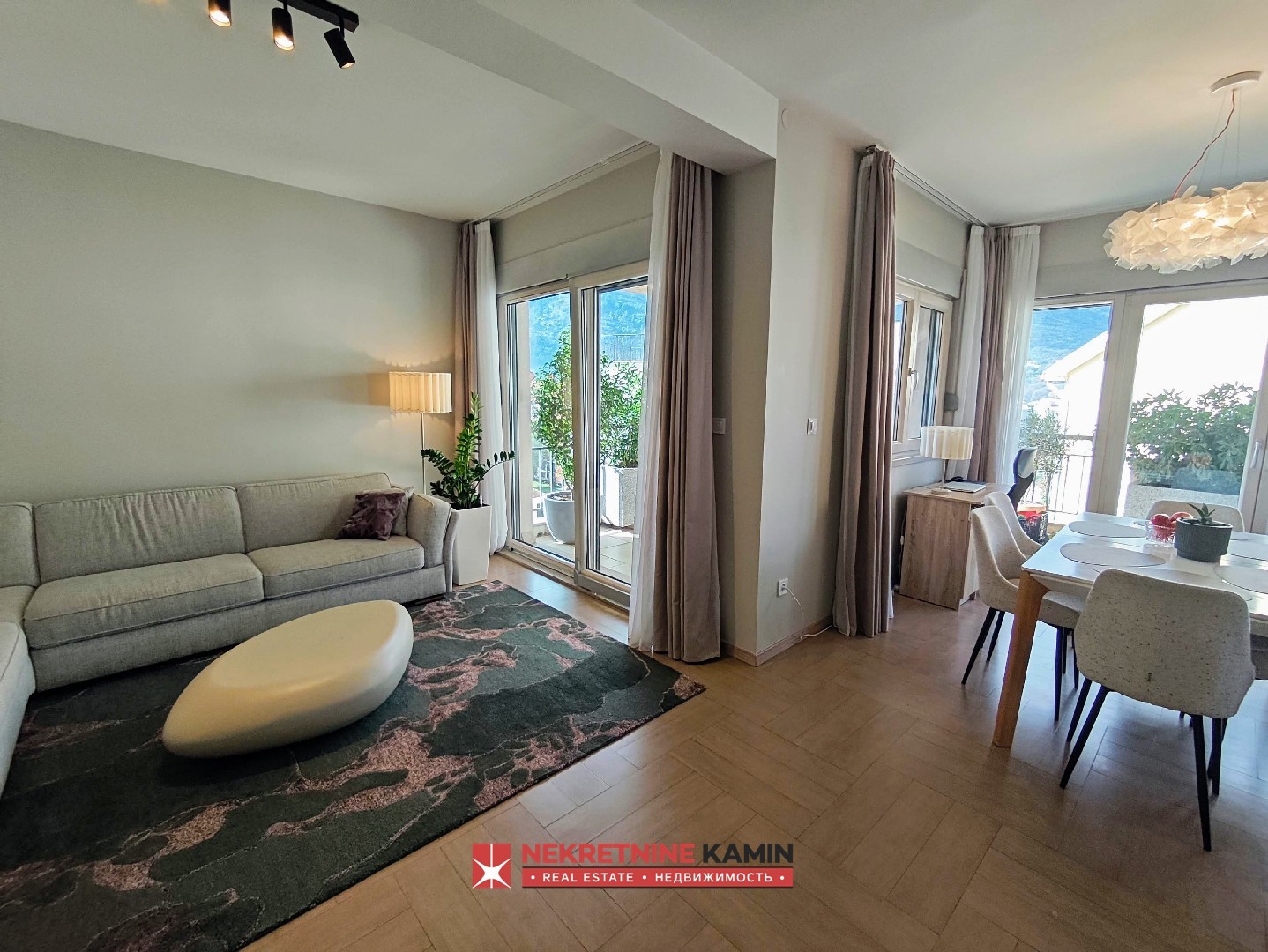 Na prodaju je komforan trosoban stan površine 114 m², smešten na jednoj od najatraktivnijih lokacija u Dobroti, u neposrednoj blizini crkve Sv. Matije, svega 100 metara od mora.