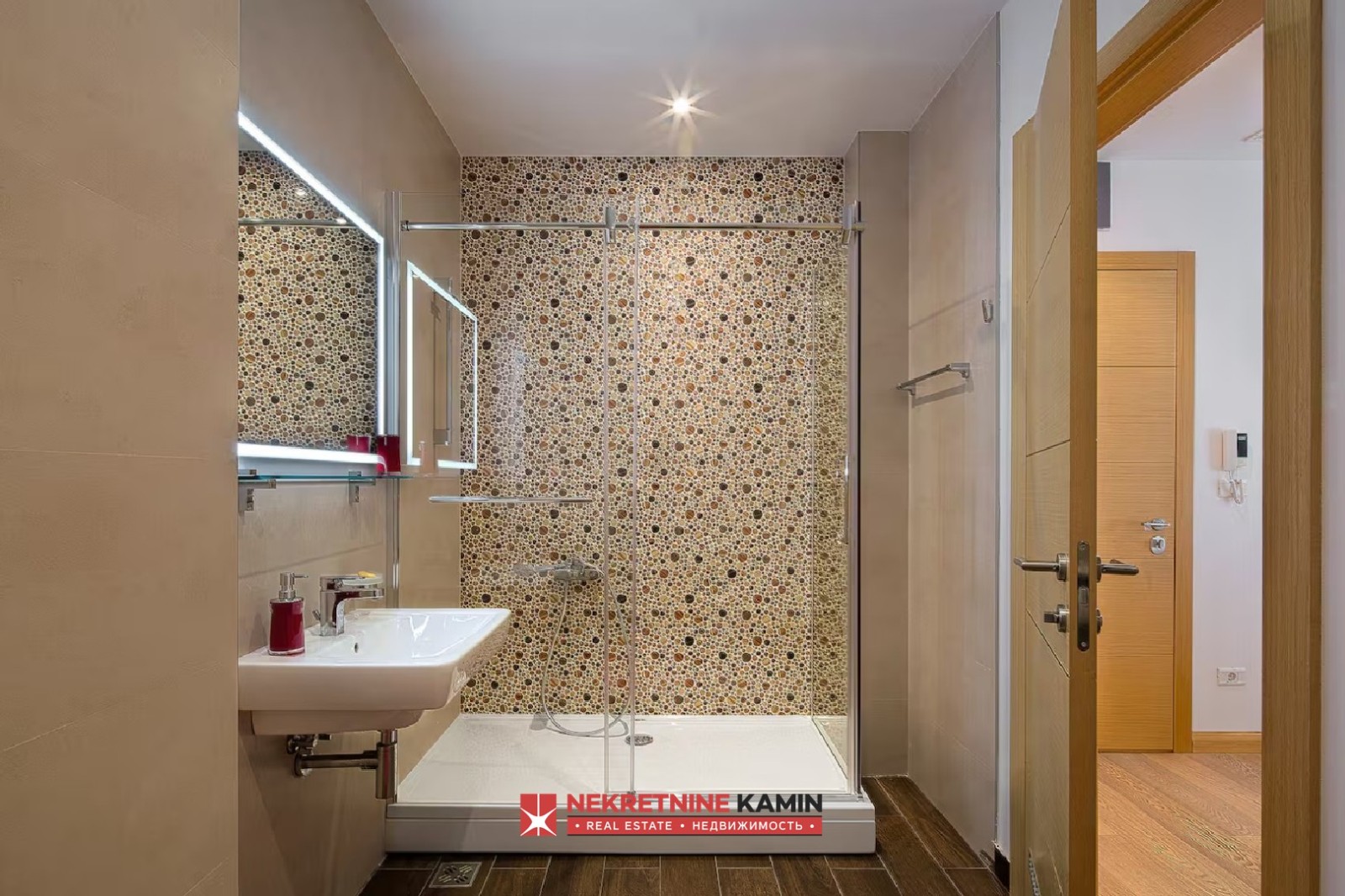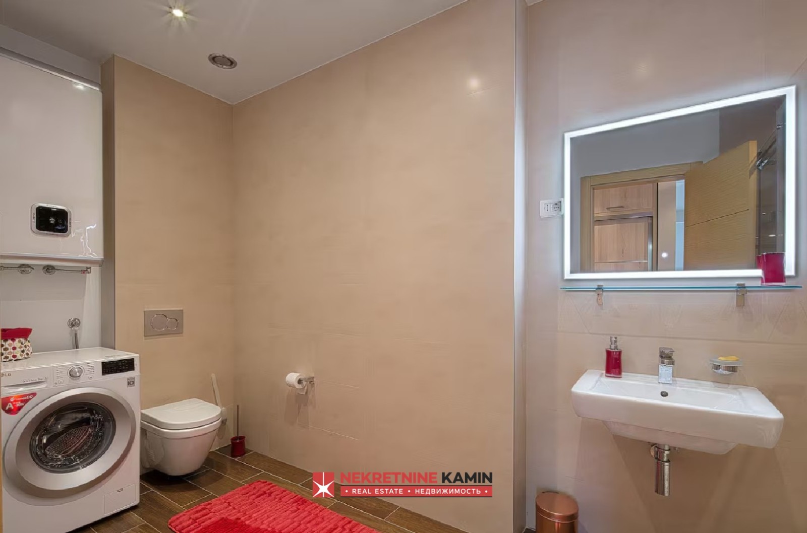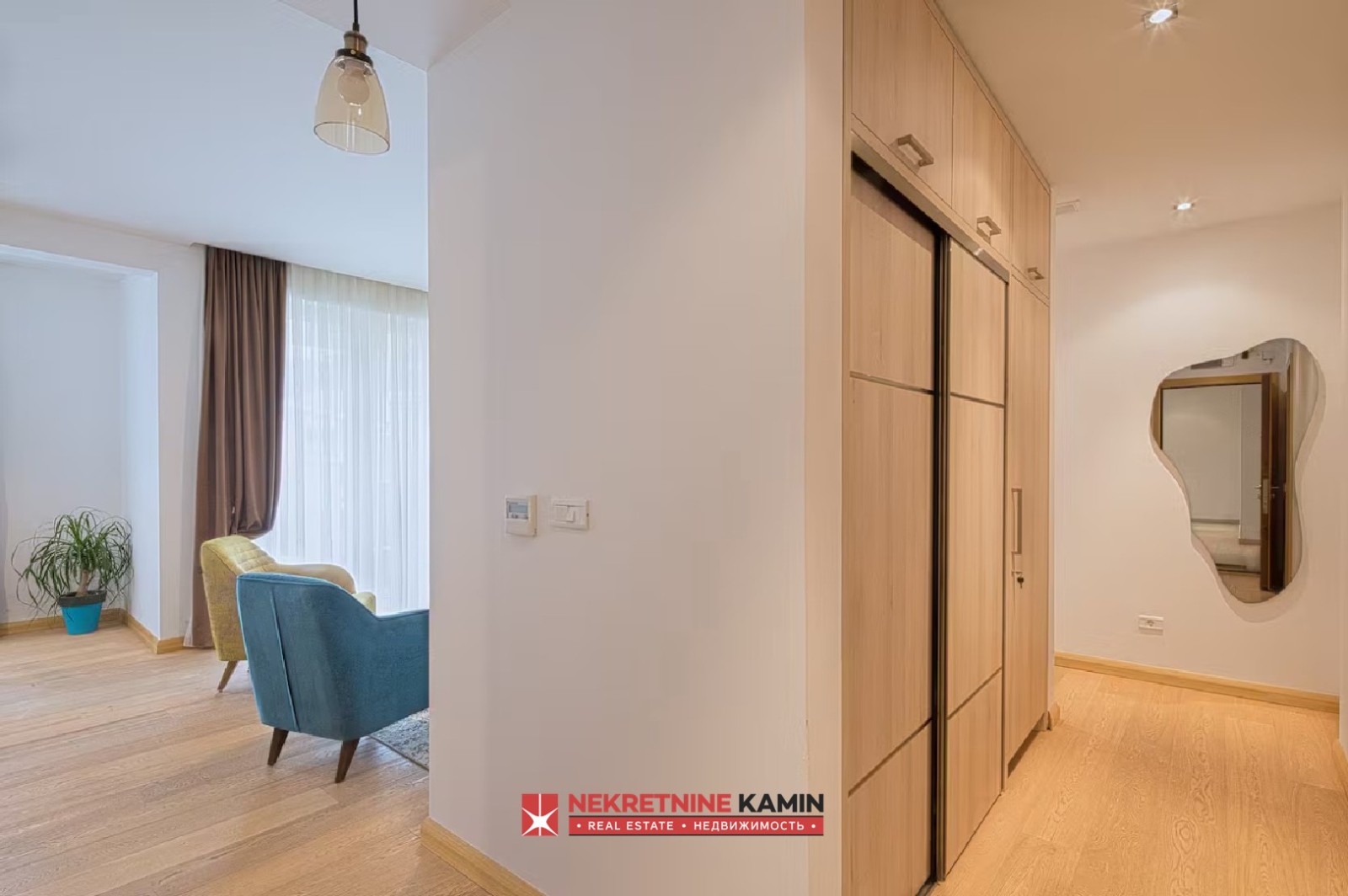 Stan se sastoji od ulaznog hodnika, prostranog dnevnog boravka sa kuhinjom, dve komforne spavaće sobe, kupatila i dve terase koje dodatno doprinose osećaju prostora i komfora. Kupatilo je opremljeno podnim grejanjem, dok je u stanu ugrađen savremeni inverter sistem klimatizacije, što obezbeđuje prijatnu temperaturu tokom cele godine.