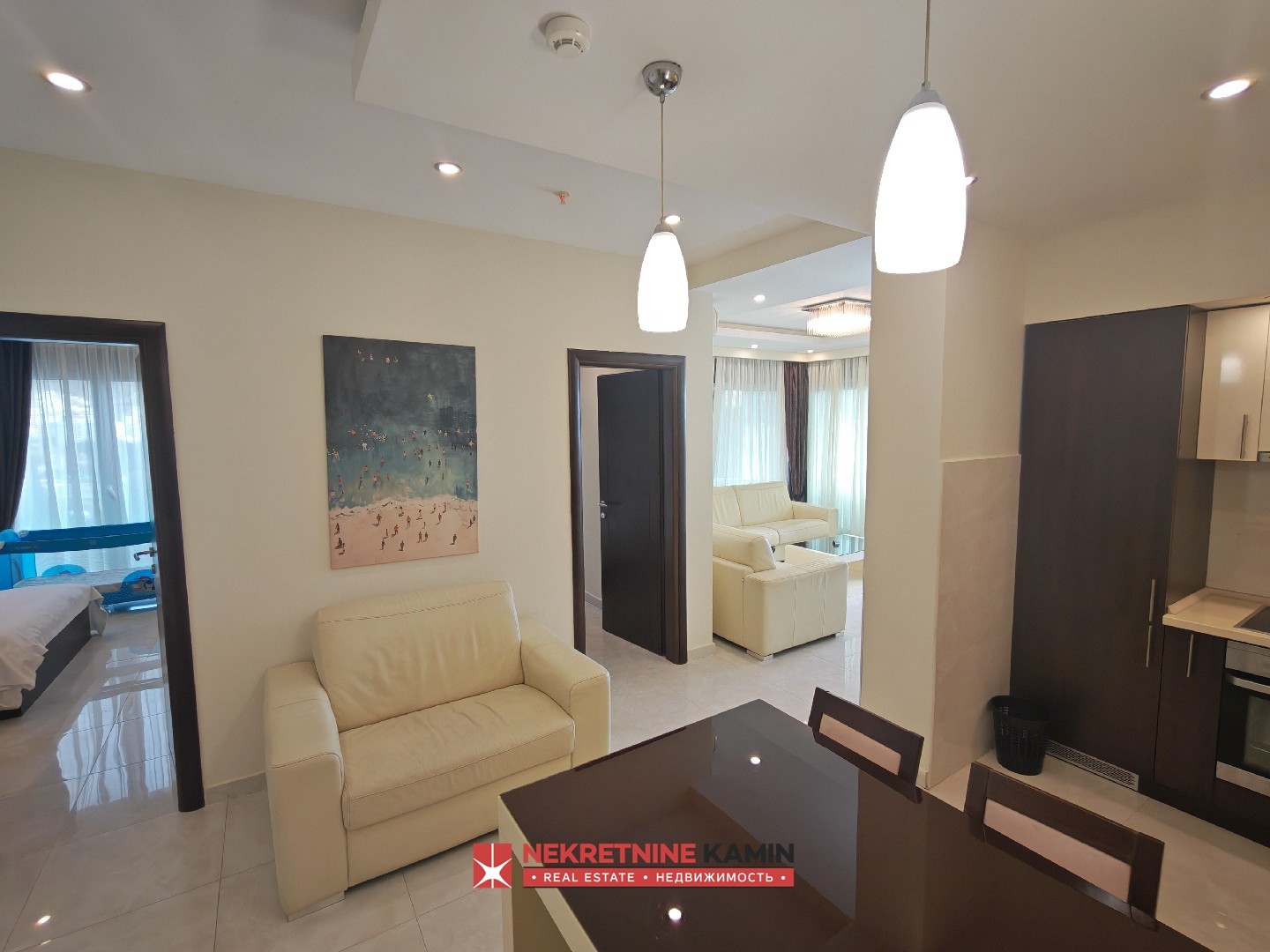 Strukturu stana čine ulazni hodnik, kuhinja sa trpezarijom, prostran dnevni boravak, kupatilo, dve komforne spavaće sobe, od kojih jedna ima direktan izlaz na terasu, kao i velika terasa sa otvorenim, panoramskim pogledom na more i bečićku plažu. Ovakav pogled dodatno ističe vrednost nekretnine i stvara poseban ambijent za boravak tokom cele godine.