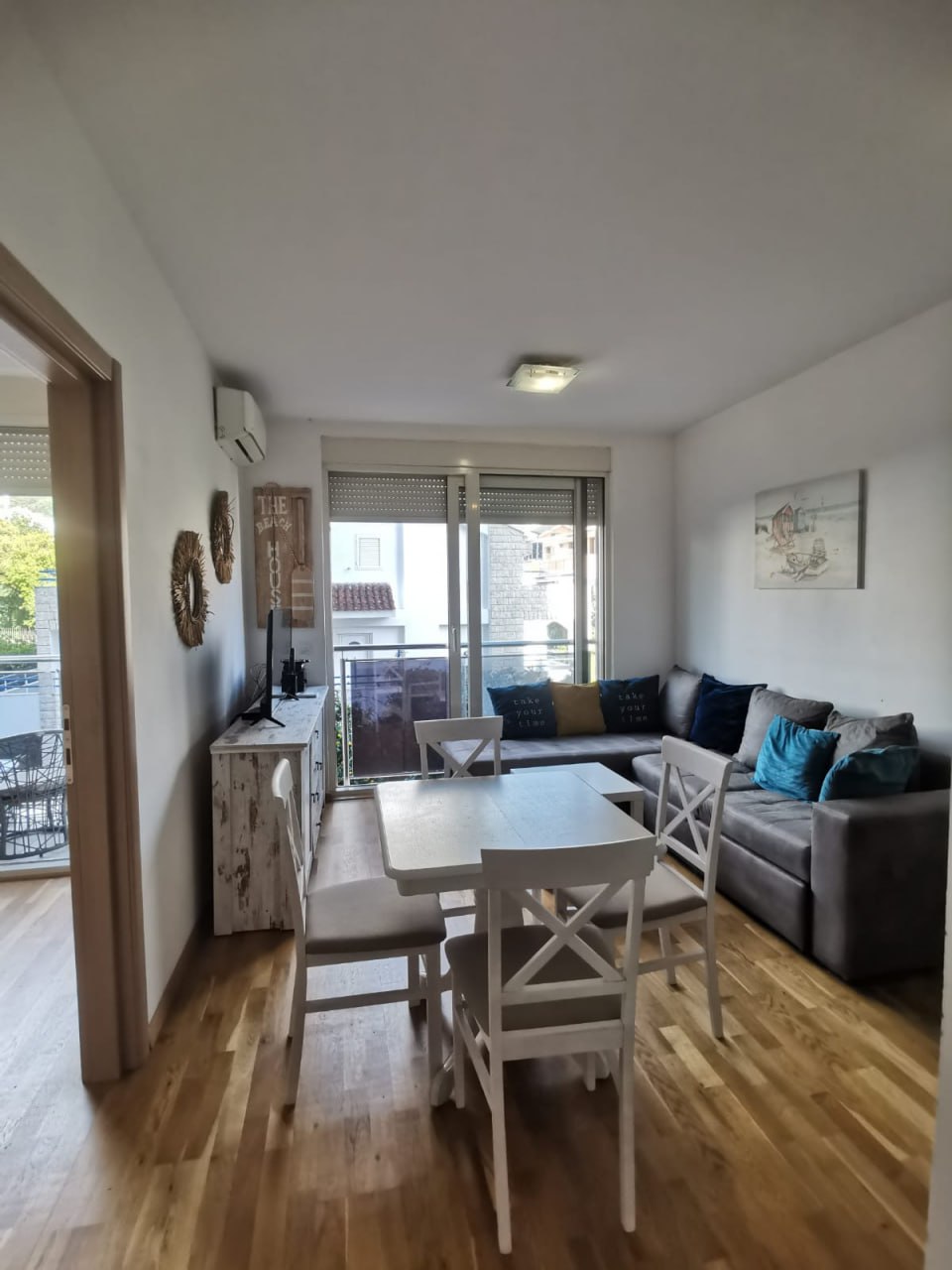Jednosoban stan, prva linija do mora, RafailovićiPovršina stana: 52m2Hodnik, dnevni boravak, kuhinja, kupatilo, spavaća soba, velika terasa...