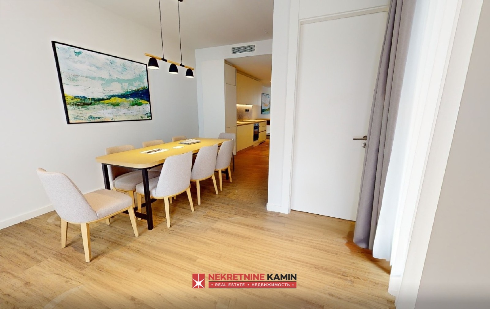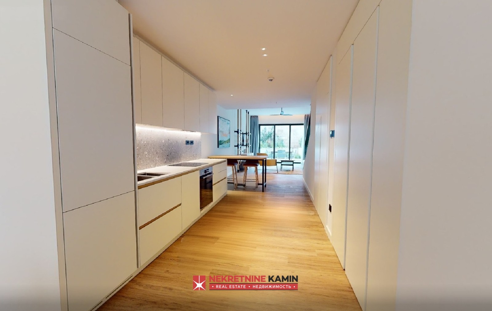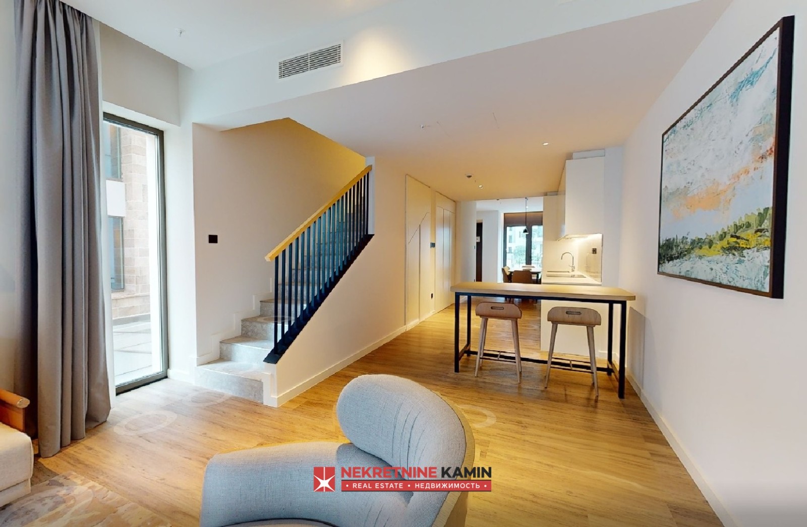 Stan je kompletno dizajnerski opremljen luksuznim nameštajem i vrhunskom belom tehnikom, a u cenu je uključeno i parking mesto u podzemnoj garaži.