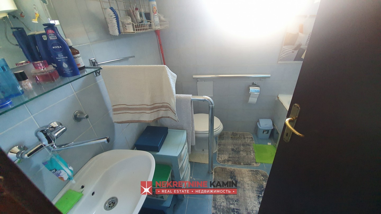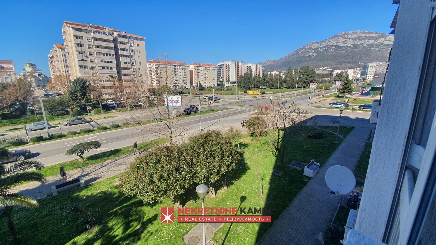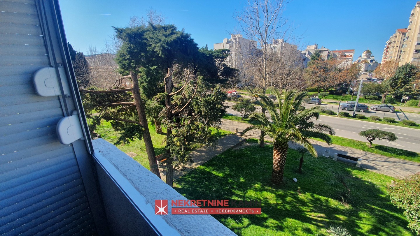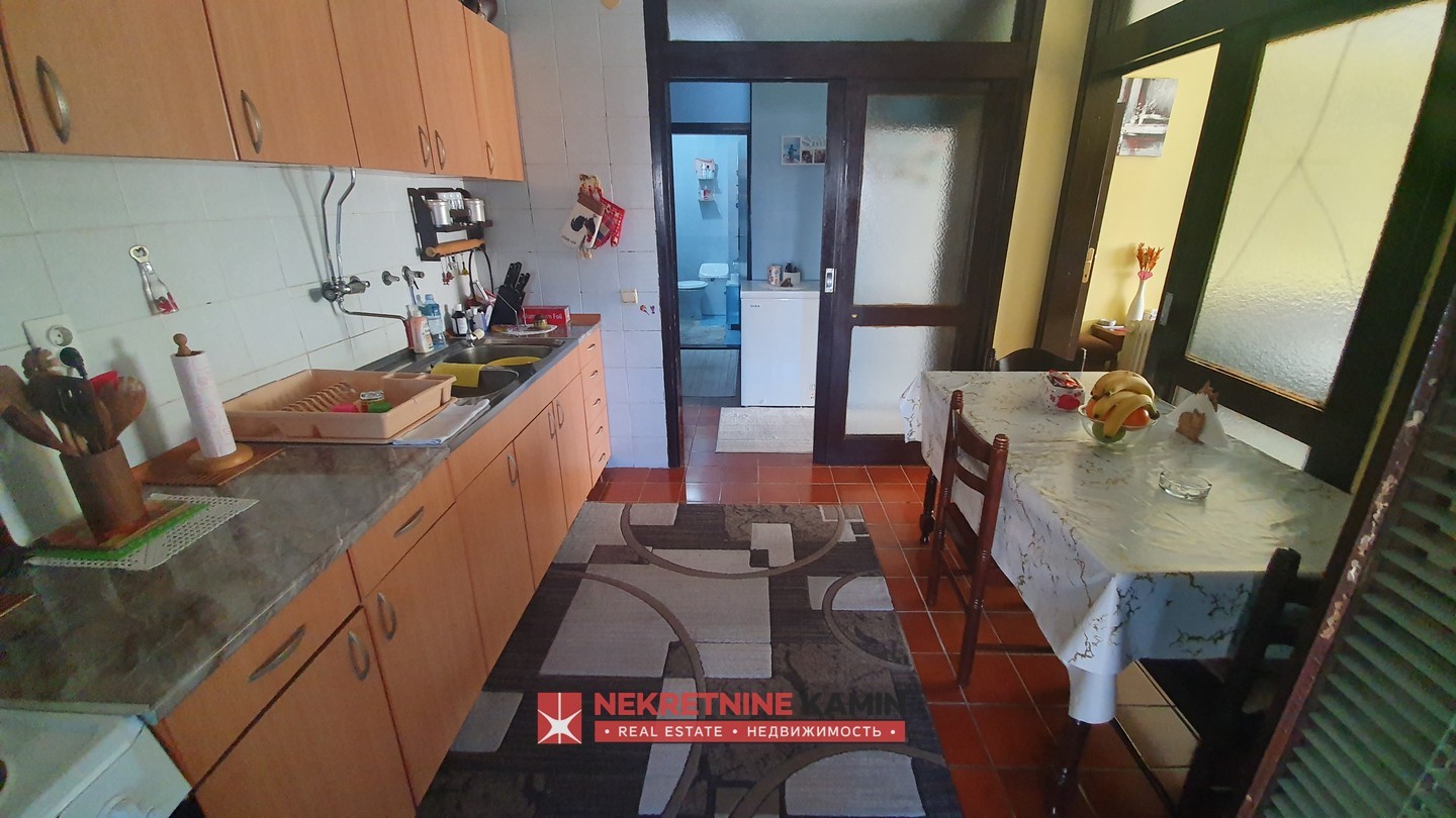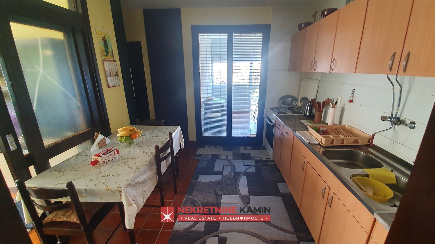 Rasporedjen je na: hodnik, dnevnu sobu, odvojenu kuhinju i trpezariju, dvije spavaće sobe, terasu i kupatilo+toalet.