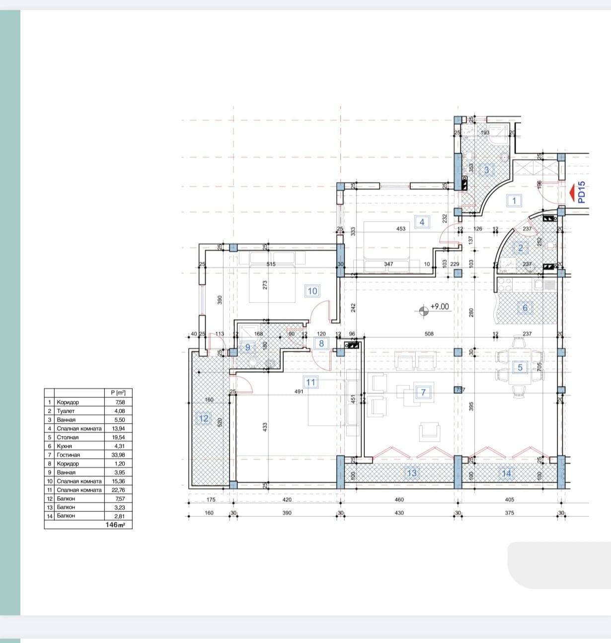 Ukupna površina stana iznosi približno 146 m², a prostor je organizovan tako da pruža visok nivo komfora za porodični život.