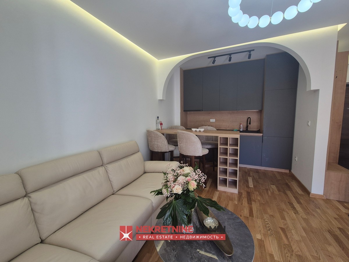 Jednosoban stan, prva linija do mora, RafailovićiPovršina stana: 52m2Hodnik, dnevni boravak, kuhinja, kupatilo, spavaća soba, velika terasa...