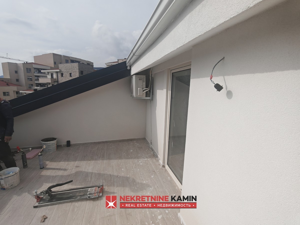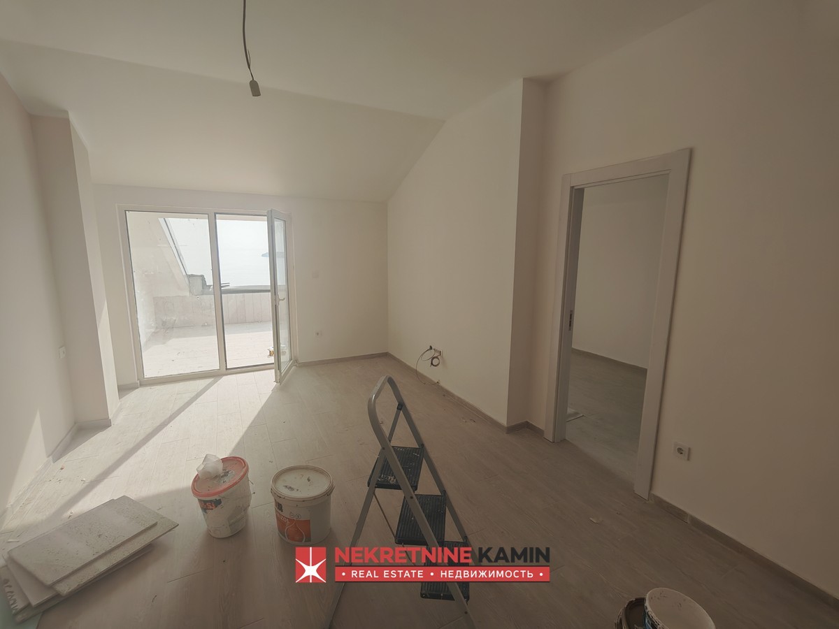 Stan je nov i neuseljavan, pozicioniran u potkrovlju, i odlikuje se funkcionalnim rasporedom i atraktivnim spoljnim prostorom.