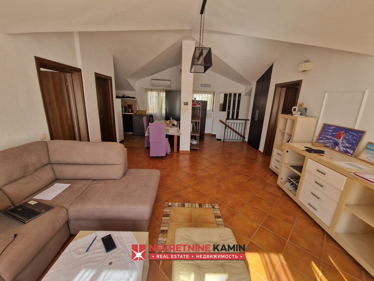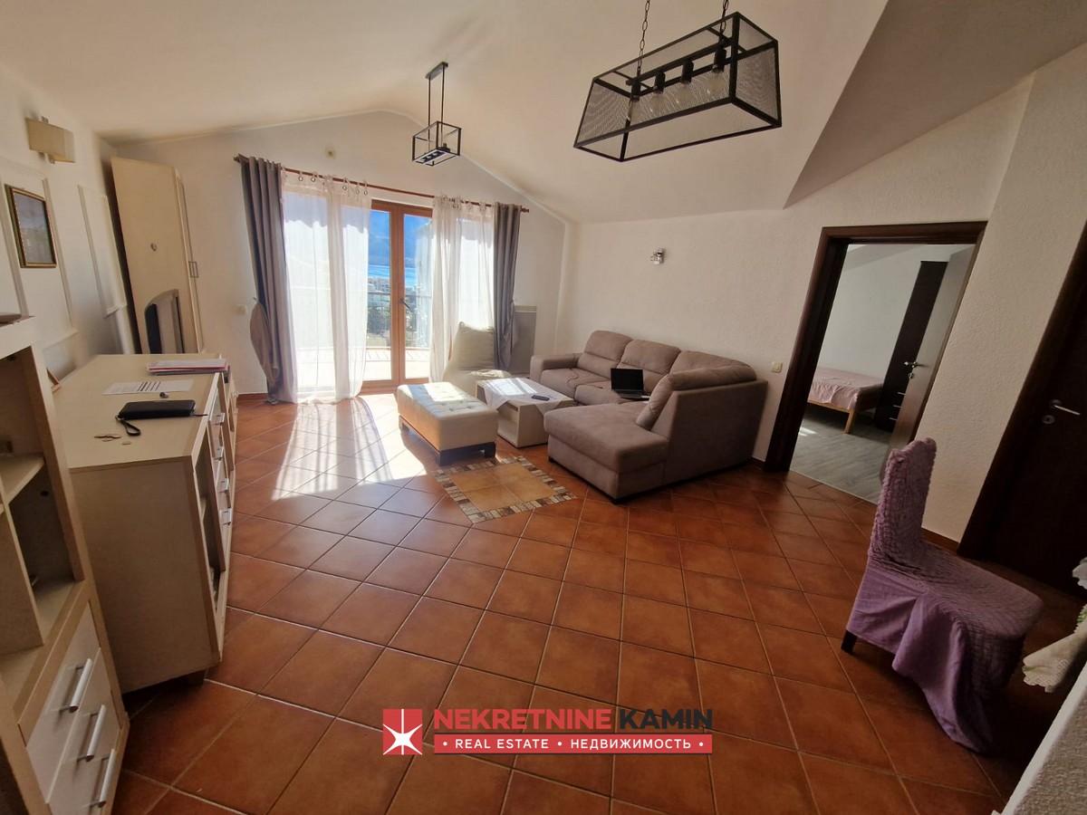 Struktura stana je izuzetno funkcionalna i obuhvata veliki dnevni boravak sa trpezarijom i kuhinjom, dve spavaće sobe, dva kupatila i južno orijentisanu prostranu terasu. Posebna prednost ove nekretnine je velika terasa sa pogledom na more, koja se pruža širinom celog stana i na koju se izlazi iz dnevnog boravka i iz obe spavaće sobe.