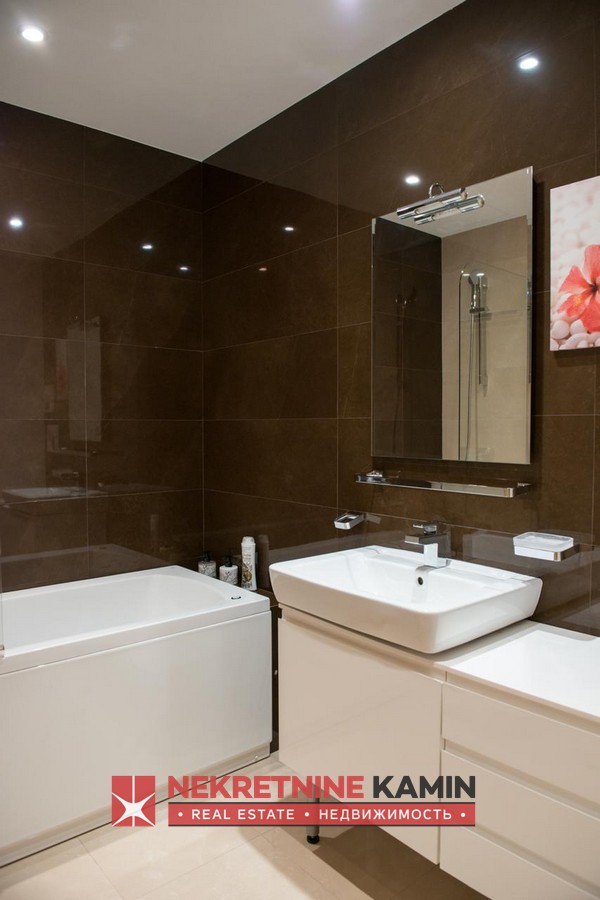 Izdaje se moderno opremljen jednosoban stan površine 77 m², smješten na 6. spratu savremene zgrade sa liftom, u blizini hotela Slavija. Stan je veoma svijetao, funkcionalno raspoređen i uređen luksuznim namještajem.
