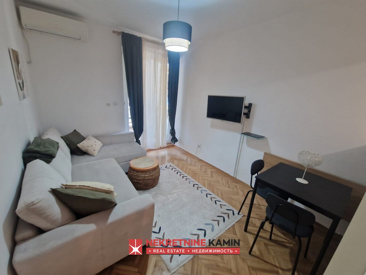 Izdaje se potpuno renoviran i moderno opremljen jednosoban stan površine 38m², smešten na prvom spratu stambene zgrade u samom centru Budve, u neposrednoj blizini TQ Plaza.