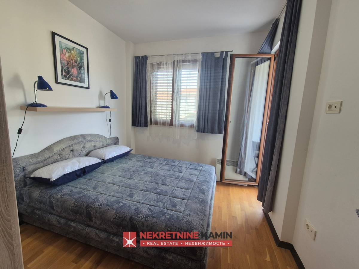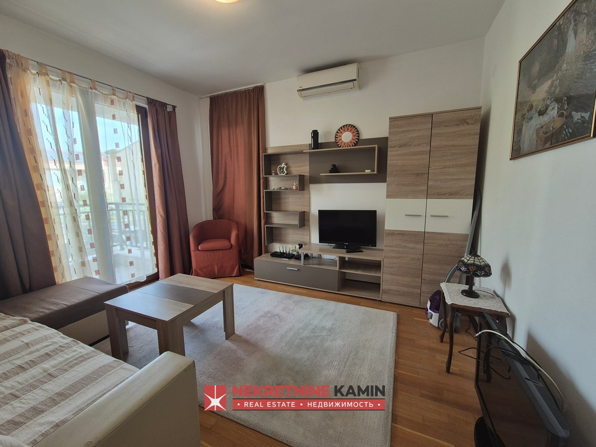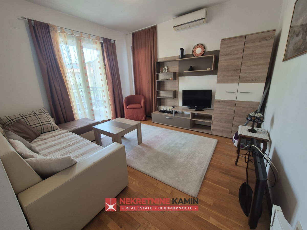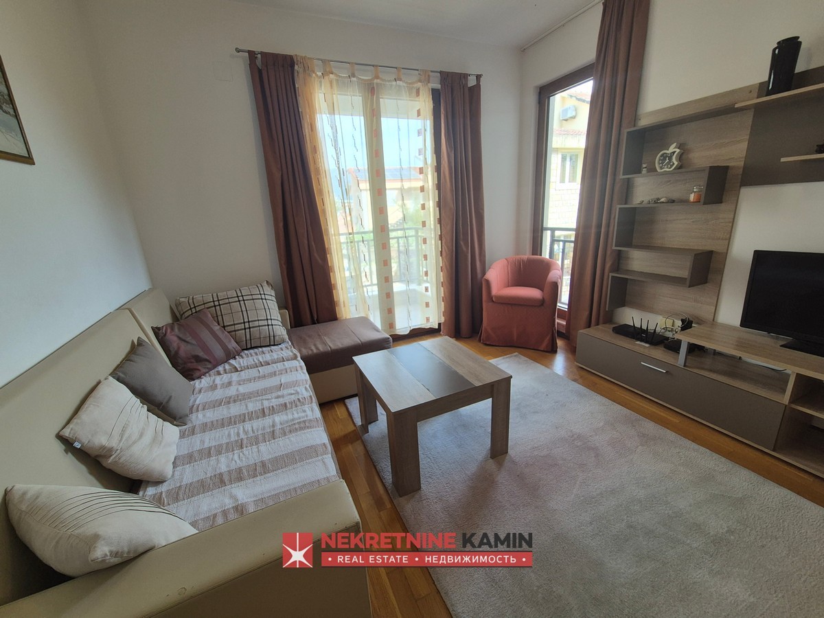 Struktura stana je funkcionalna i lijepo raspoređena: ulazni hodnik, kuhinja sa trpezarijom, dnevna soba sa izlazom na terasu, spavaća soba koja takođe ima izlaz na terasu, kao i kupatilo opremljeno podnim grijanjem.