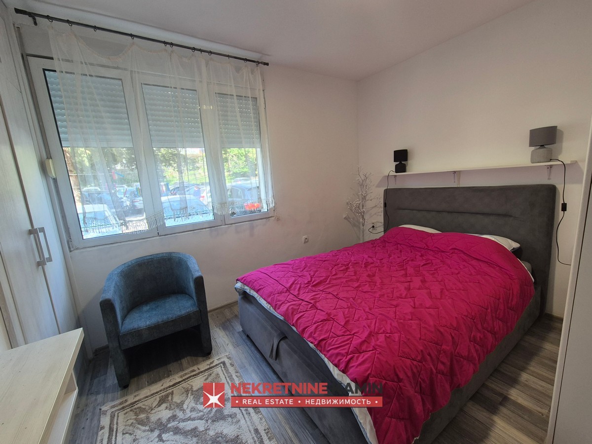 Pozicioniran je na I spratu stambene zgrade i kompletno je opremljen.