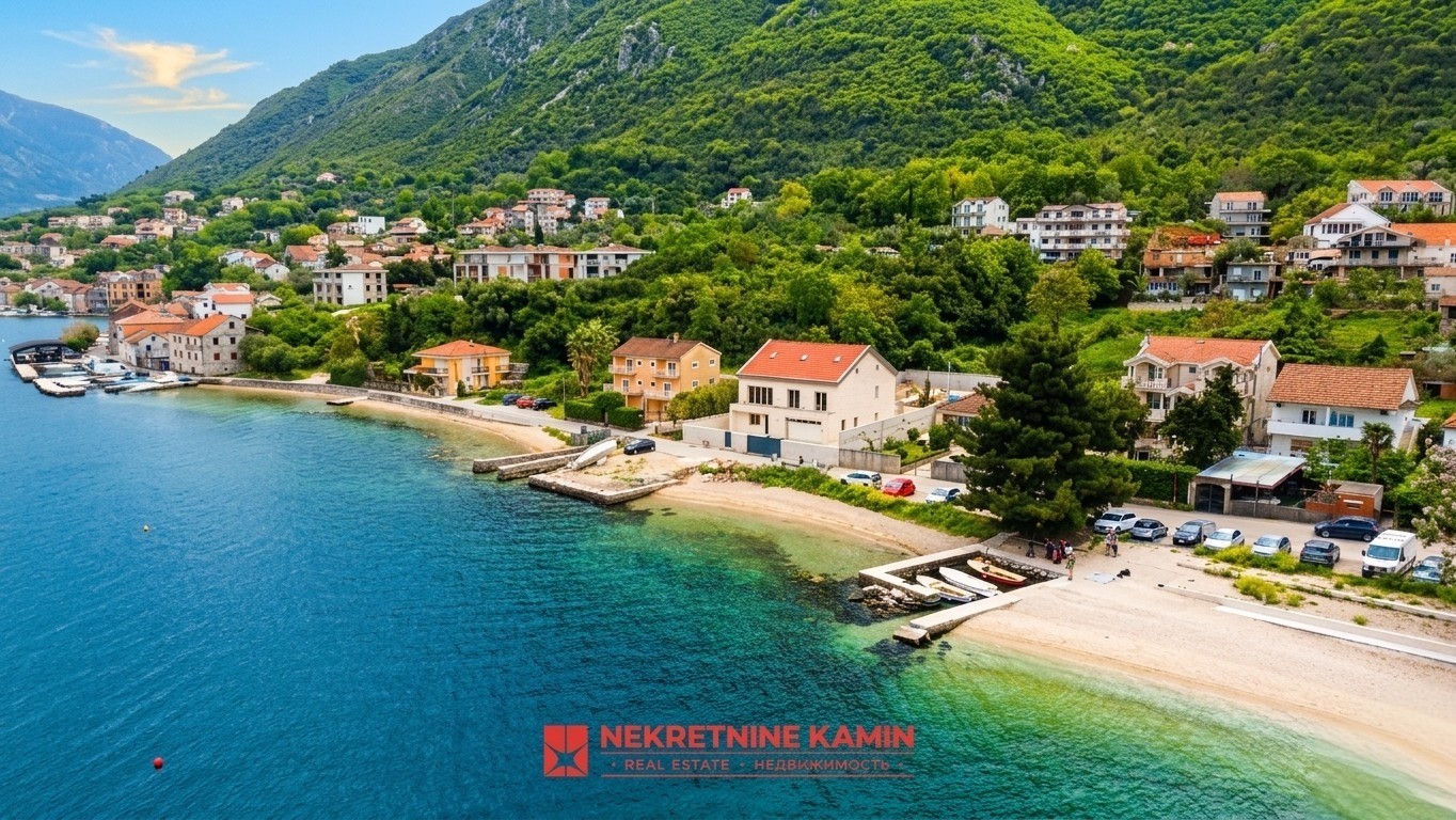 Na prodaju kuća na izuzetnoj lokaciji u Prčnju, svega nekoliko koraka od mora – između objekta i obale nalazi se samo lokalni put. U neposrednoj blizini nalazi se Hyatt Regency Kotor Bay Resort, što dodatno potvrđuje prestiž i atraktivnost mikrolokacije.