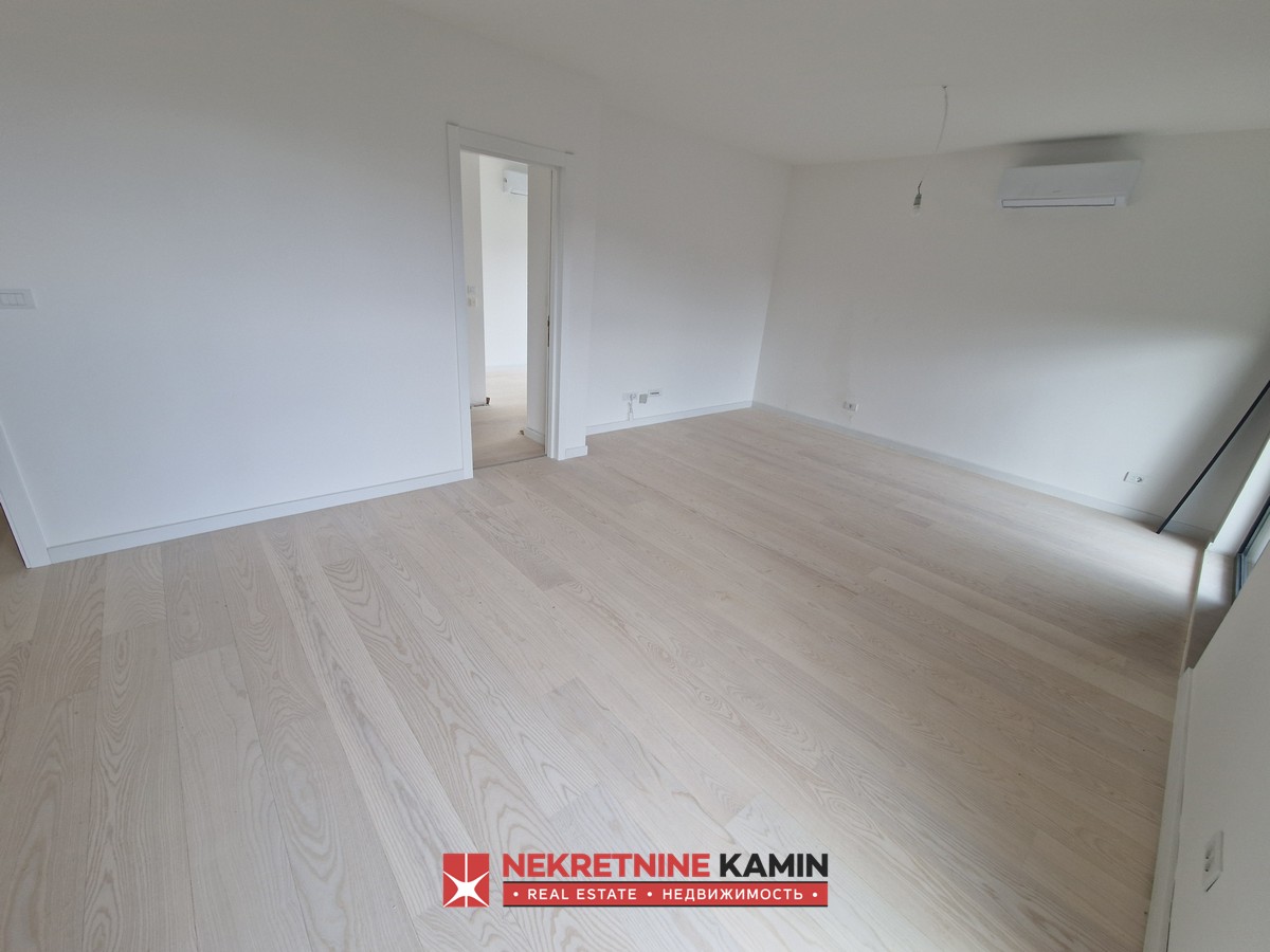 Sastoji se od hodnika, dnevnog boravka s kuhinjom, dvije spavaće sobe, tri terase i tri kupatila.