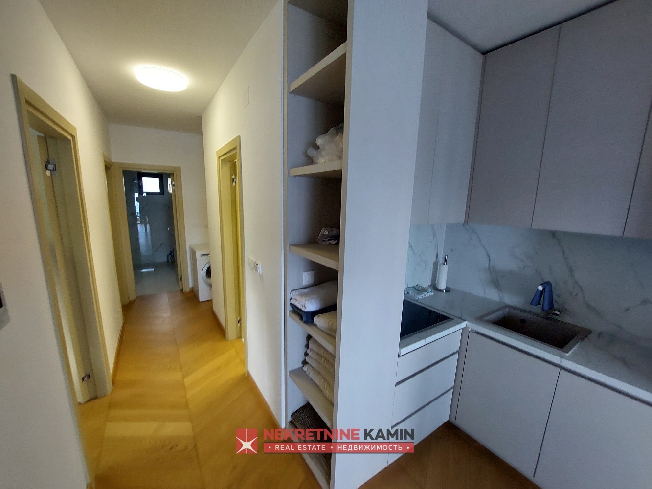 Kompletno sređen i opremljen sa pažnjom na svaki detalj, ovaj stan nudi izuzetnu funkcionalnost i eleganciju. Prostor je osmišljen za sve koji žele da uživaju u luksuzu i modernom dizajnu, a njegova lokacija unutar kompleksa garantuje mir i privatnost.