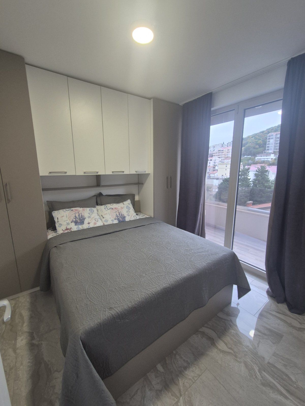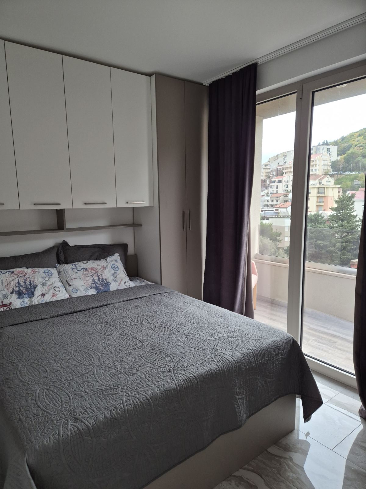 Budva'nın tam merkezinde, 40 m²'lik bir tek yatak odalı daire uzun süreli kiralık. Bina, Voli süpermarketin yanında, Avala...